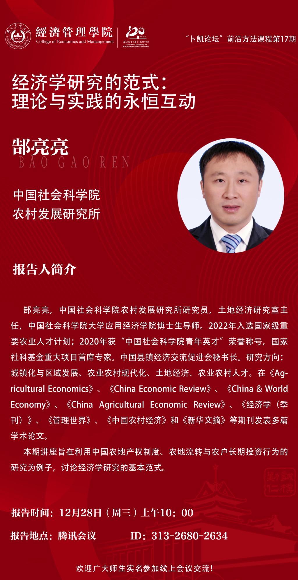 题 目:经济学研究的范式:理论与实践的永恒互动