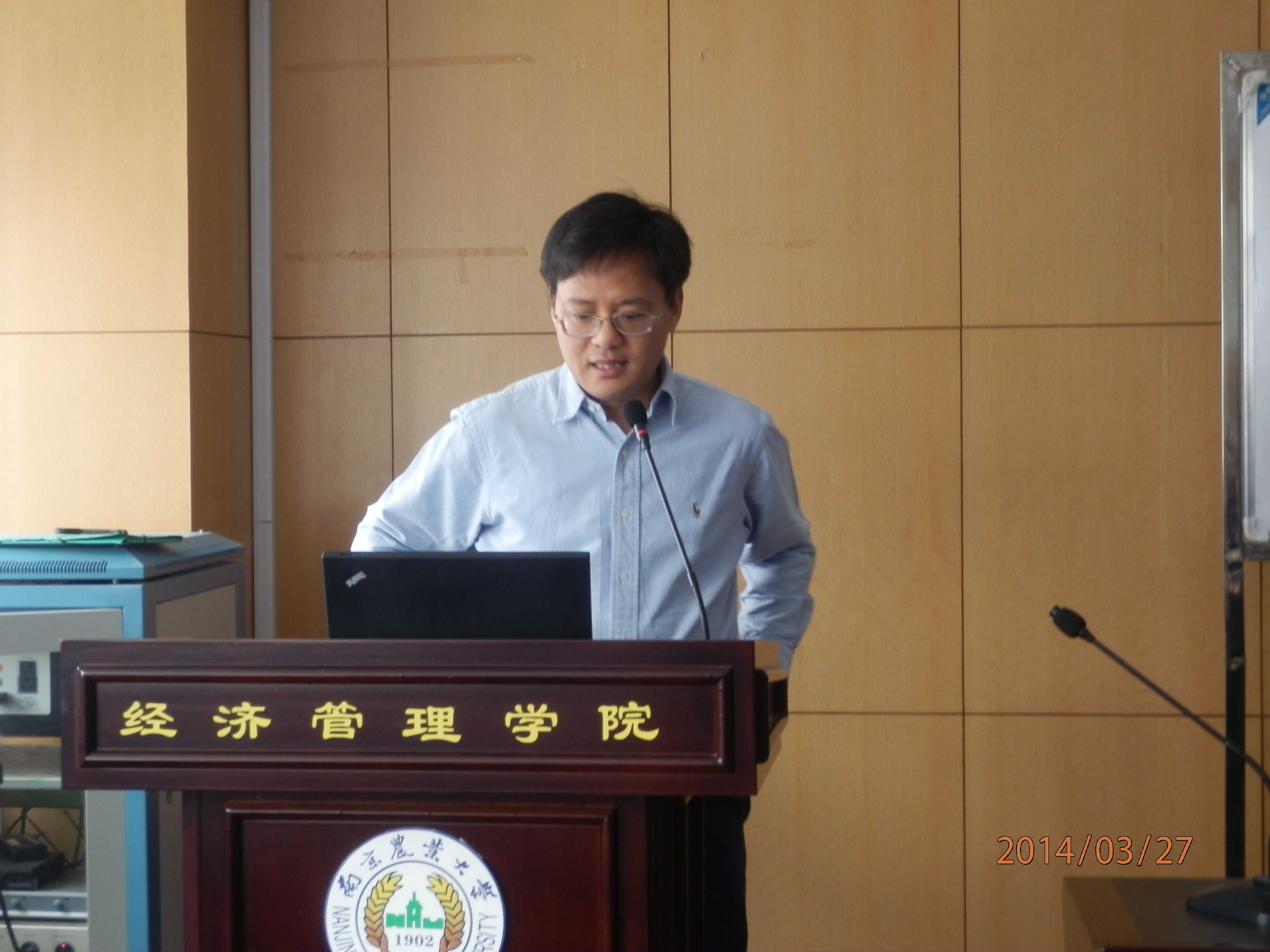 3月27日上午10点,丹麦哥本哈根大学余武胜教授在逸夫楼5045经管学术报告厅作题为“Trade and domestic food policy in China and India in the 2007/8 world food price crisis”的报告,钟甫宁教授主持了本次报告会。此次报告会吸引了我院众多老师和研究生参加。