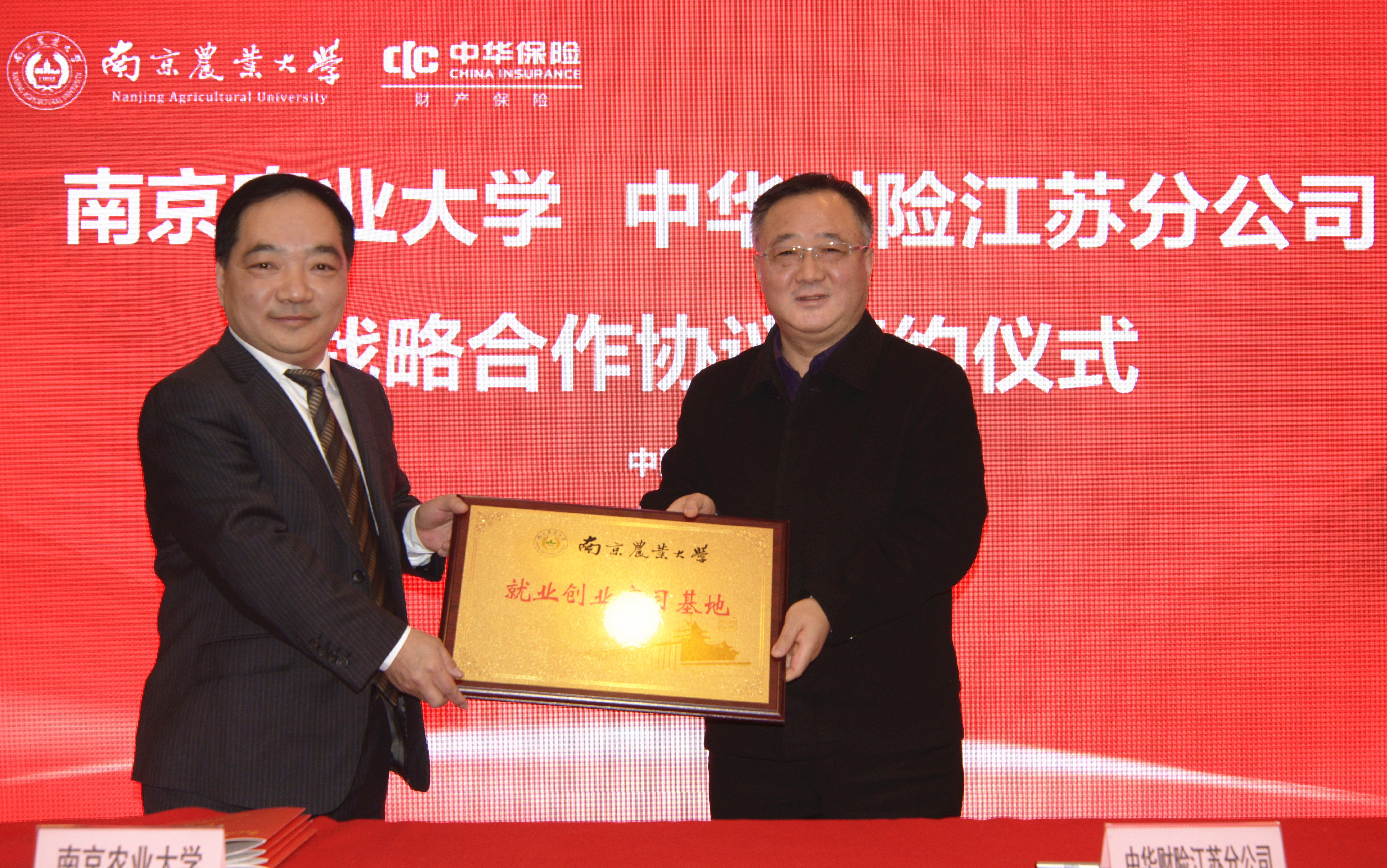 孙雪峰阐述了此次签约仪式的背景、目的与意义。他指出此次仪式是学校领导及中华财险江苏分公司领导的深切关怀下,开展的一次校企深度合作;是双方协同发展、优势互惠、持续共赢的一次创新之举。未来双方将在服务三农、保障民生、促进发展等方面深度合作,为社会发展贡献力量。