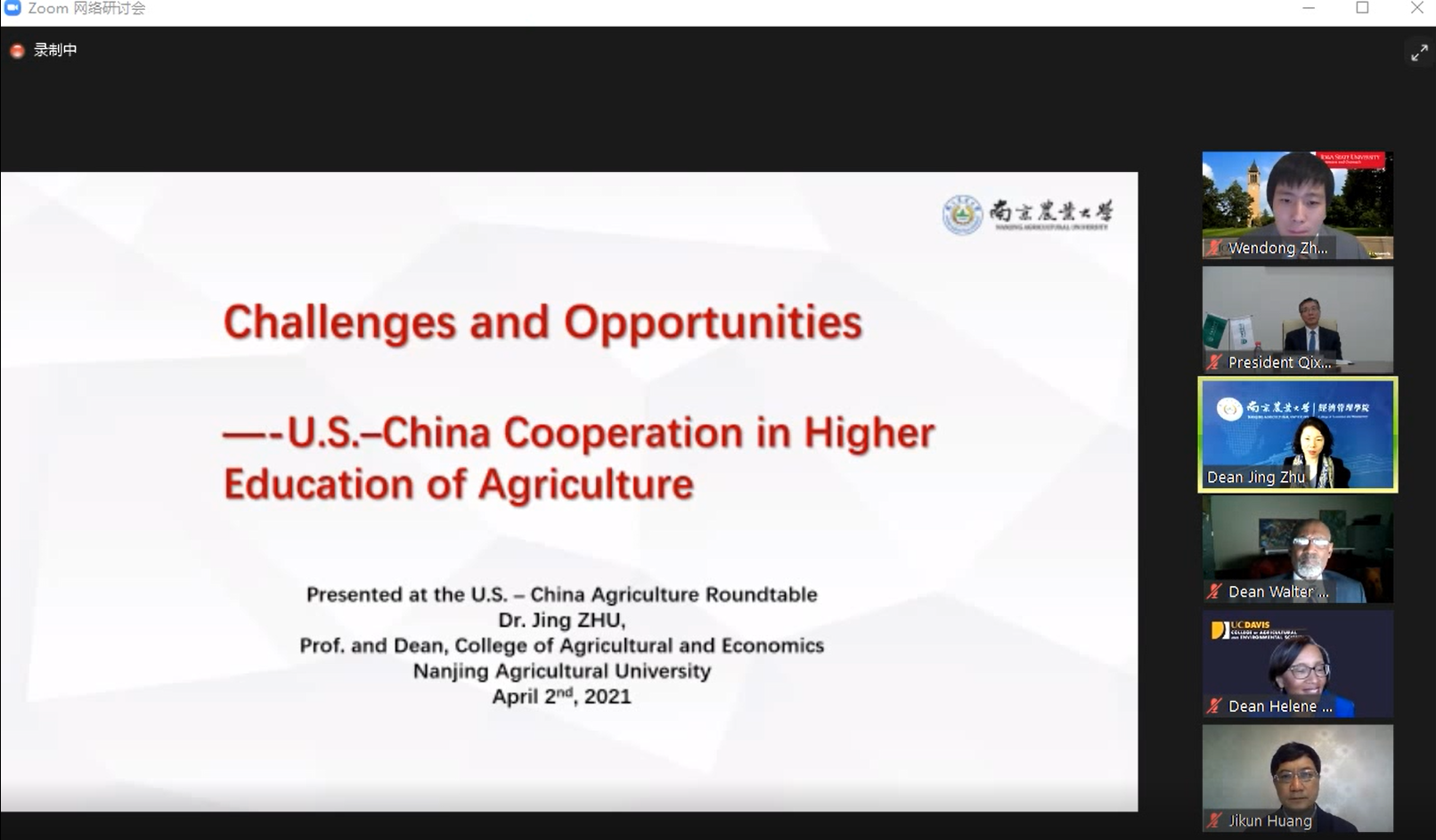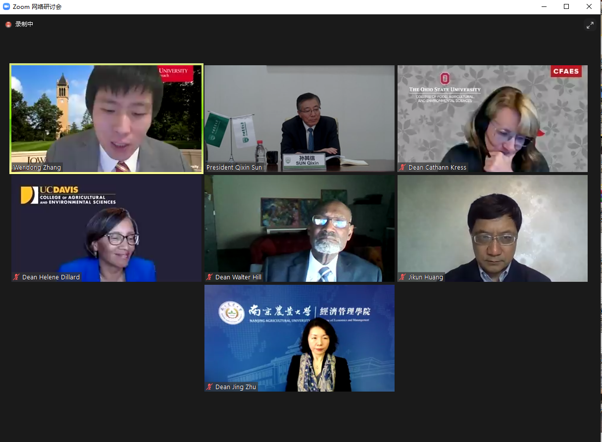 朱晶教授分析了当前两国关系、新冠疫情对中美农业高等教育合作带来的挑战与机遇,分享了我校与美国密西根州立大学在应对新冠疫情影响、持续推进中美农业高等教育合作、开展联合办学方面的成功案例。