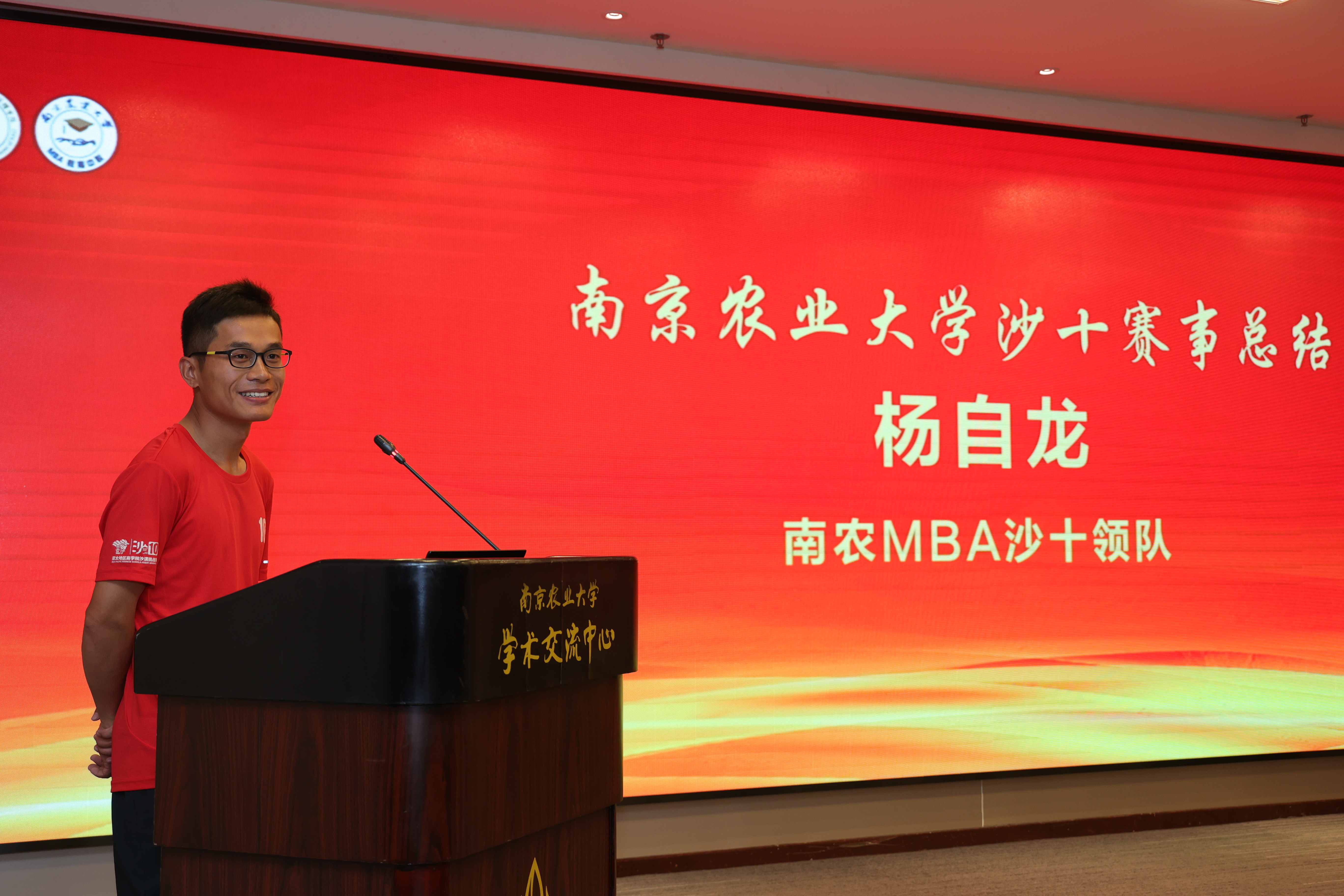 南农MBA沙十组委会主席、沙十赛事总策划人陈超教授代表沙十组委会进行总结,对组委会近一年的筹备工作进行全面分析,对沙十学生团队取得的成绩予以充分肯定,并期待大家在沙11赛事中能够深挖更多南农特色与亮点,再创辉煌。