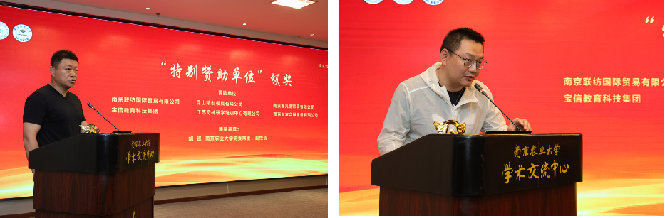 在沙11启动仪式上,沙10领队、2020级MBA学员杨自龙,沙11领队、2021级MBA学员王剑在联合会主席沈超的见证下完成了南农“沙漠绿洲队”队旗的交接。
