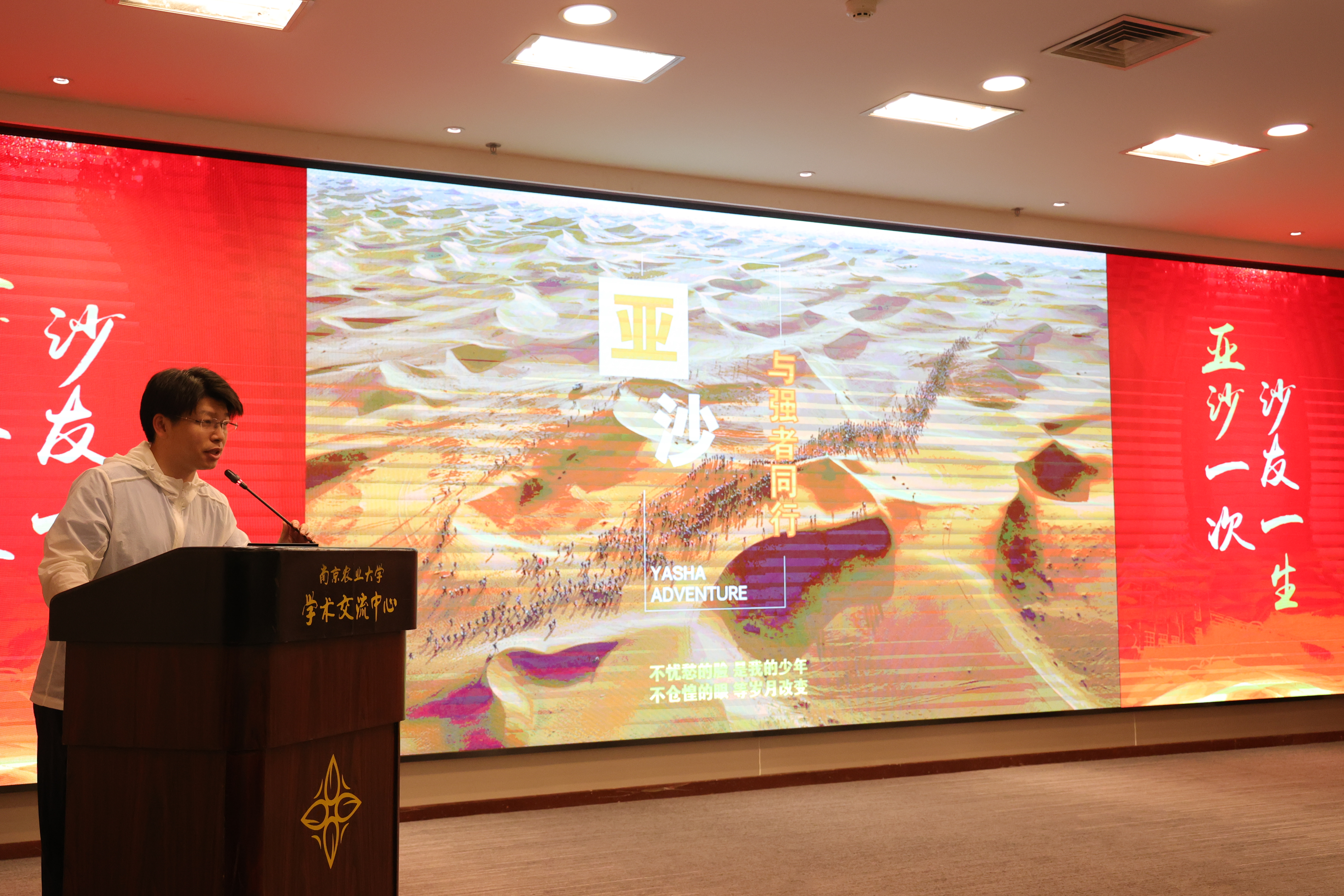 朱晶代表学院对各位领导和嘉宾的到来表示欢迎。她简要介绍了学院的发展概况以及MBA教育中心近年来在人才培养方面取得的各项成绩。她对学校领导对此次活动的全程关心与指导、校各相关部门及赞助商的大力支持表示由衷感谢。她指出,亚沙赛是一项覆盖范围广泛、影响力深远的户外品牌赛事,是MBA学员的第二课堂,南农MBA团队能在竞争激烈赛事中勇夺最高荣誉“金沙鸥奖”,这充分展现出了南农人坚韧不拔的精神和强大的团队协作能力,彰显了南农MBA品牌影响力,期待南农沙漠绿洲队能够在今后再接再厉、再创佳绩。