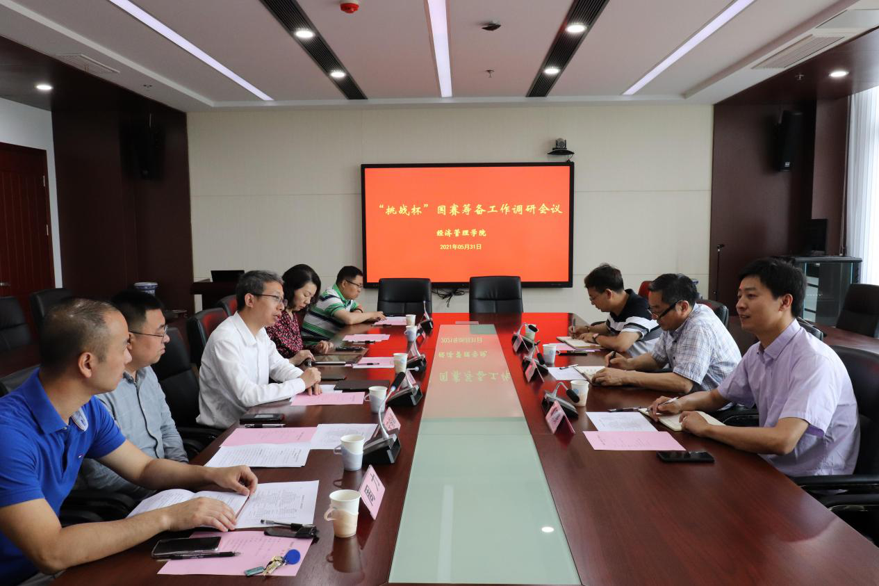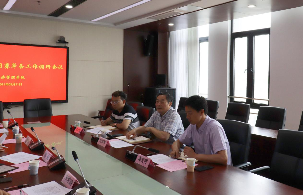 5月31日上午,校党委副书记刘营军、校团委书记谭智贇、校团委双创实践事务主管魏威岗一行来我院调研“双创”暨“挑战杯”国赛筹备工作。院党委书记姜海、院长朱晶、院党委副书记宋俊峰、副院长林光华,“挑战杯”指导教师周力,院办公室主任夏德峰,院团委书记李扬参加。会议由姜海主持。