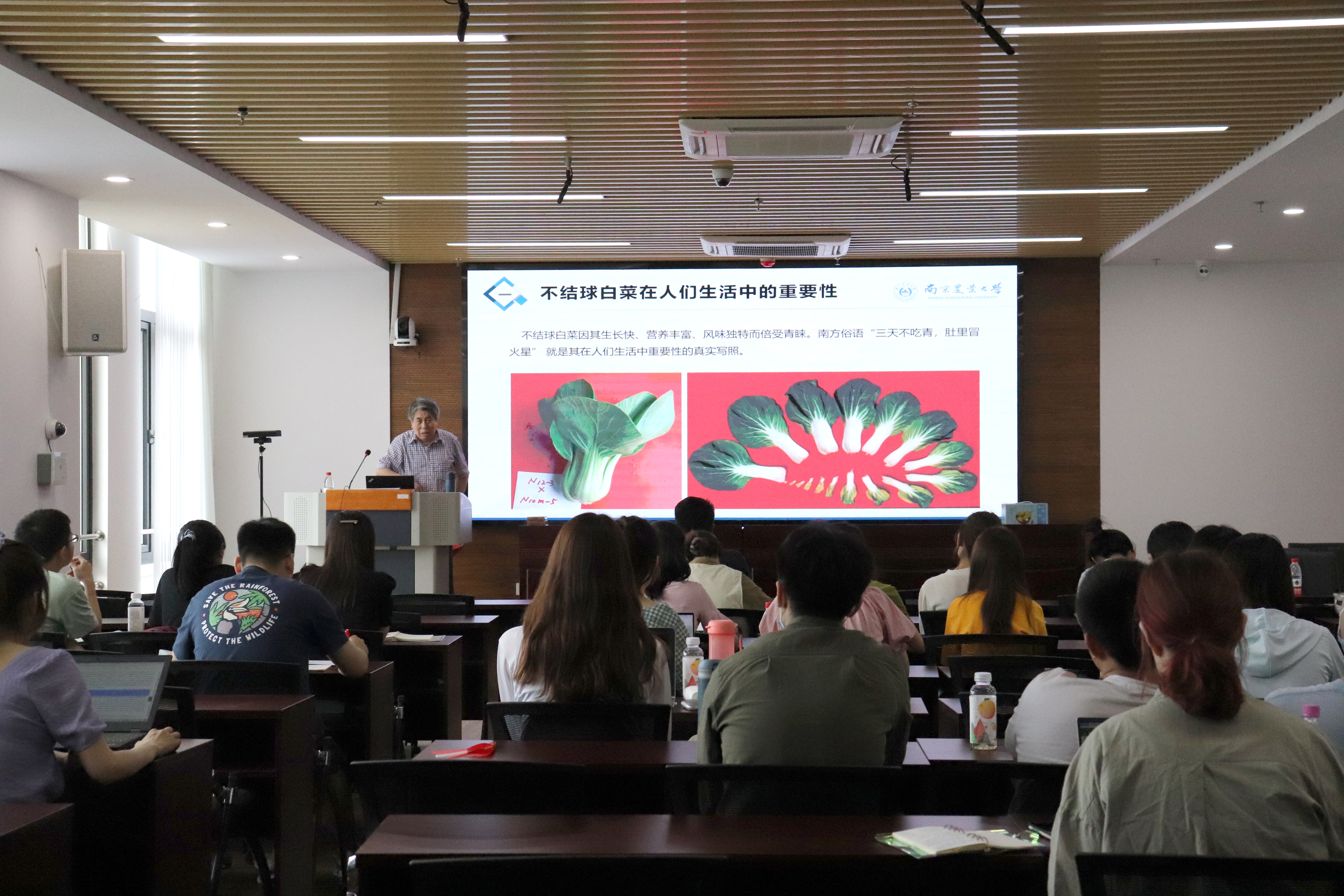 侯喜林教授介绍了其团队带头研发的不结球白菜在人们生活中的重要性。不结球白菜起源于中国,栽培历史悠久,在全国的栽培面积已由2005年的53.33万公顷上升到现在的133.33万公顷左右,提高了2.5倍,已成为我国的第三大蔬菜物种,在蔬菜周年生产供应中发挥了重要作用。不结球白菜因其生长快、营养丰富、风味独特而备受青睐。南方俗语“三天不吃青,肚里冒火星”就是其在人们生活中重要性的真实写照。
