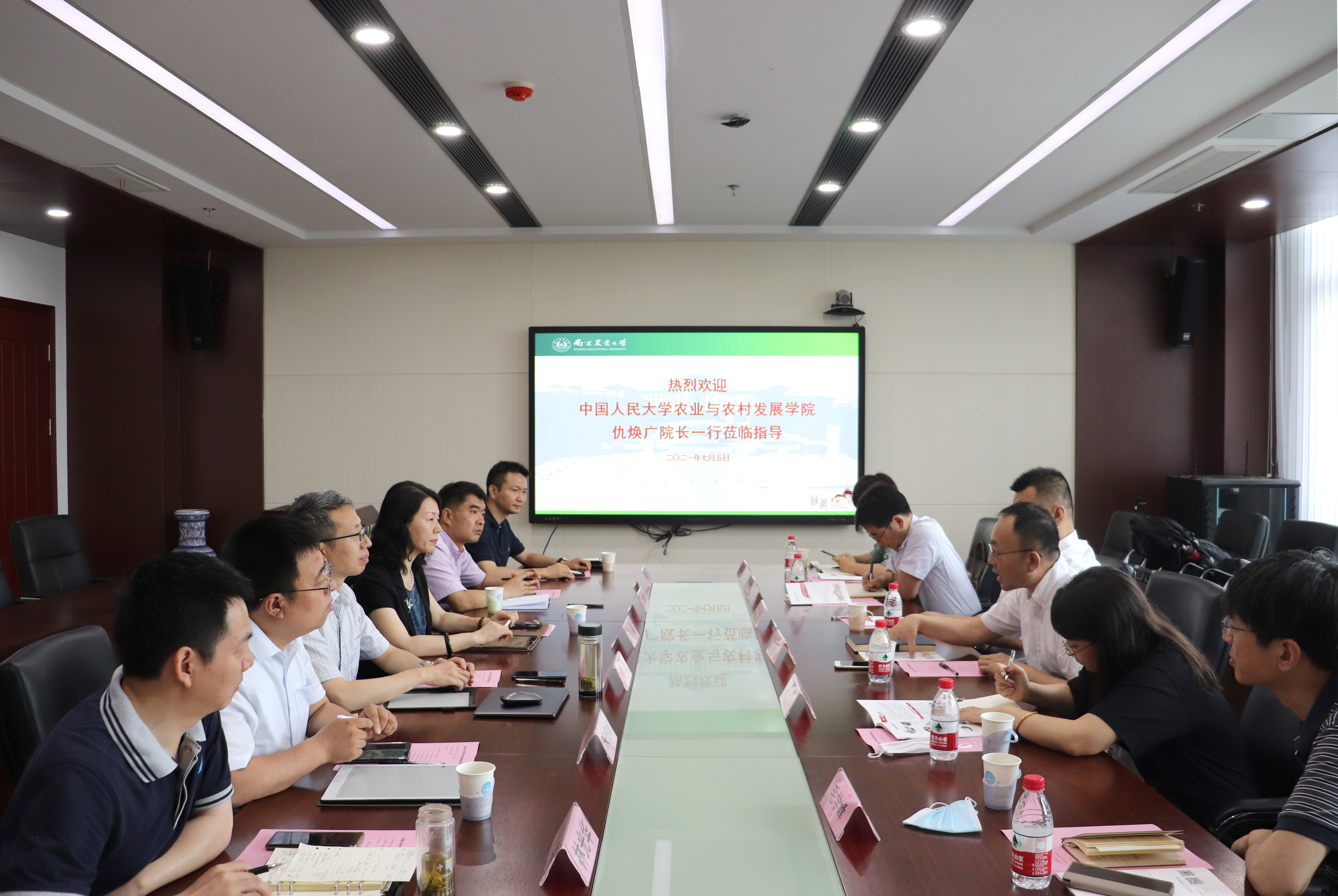 7月5日上午,中国人民大学农业与农村发展学院新一届领导班子在院长仇焕广教授的带领下,来我院进行了交流访问,学院党政领导班子全体出席会议,会议由我院院长朱晶主持。