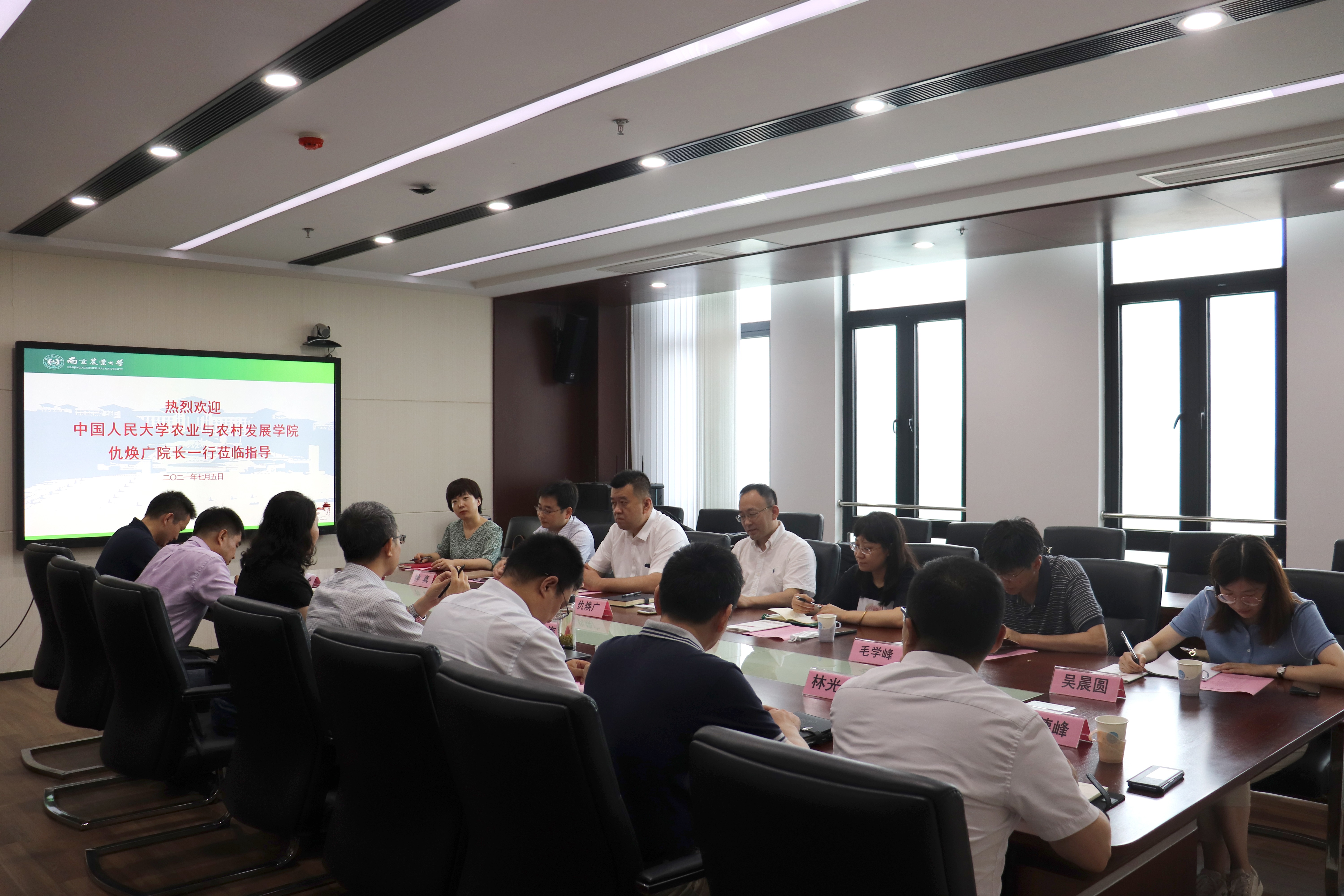 此次随同来访交流的还有中国人民大学农业与农村发展学院党委副书记康琳、副院长郑适、副院长毛学峰、副院长钟真以及田晓晖副教授和吴晨圆老师。