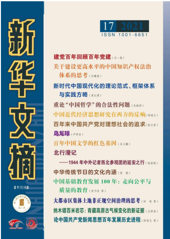 《新华文摘》是由国家新闻出版社署主管、人民出版社主办的我国顶级大型理论性、综合性、知识性、学术性文摘类权威期刊,被称为解读中国思想理论前沿、反映中国社会科学研究状况的“小百科全书”,其选登的文章代表了诸领域的前沿思想,是我国最具影响的哲学社会科学文摘类杂志。