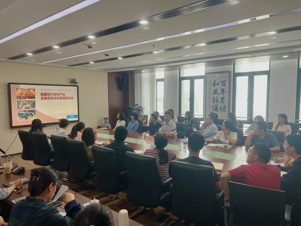 国家级教学名师、国务院“政府特殊津贴”专家王恬主要围绕我国畜牧产业概况、畜牧产业在国民经济中的重要性、我国畜牧业质量发展策略选择等三个方面,详细解读了改革开放40多年来我国畜牧业生产技术水平、产能、产量和质量取得的显著成效。他指出,中国已进入了现代畜牧业新阶段,作为世界第一畜产大国,我国应加快实施关注种质资源、安全防疫、智慧牧业、优化结构、绿色发展、适度规模、内外循环、政策平稳八大高质量发展策略,实现畜牧业高质量发展。他鼓励学院青年师生充分认识到畜牧业在国民经济中发挥的巨大作用,深度挖掘其与农业经济的紧密关联,积极寻找跨学科研究切入点,解决前沿重大“三农”现实问题。