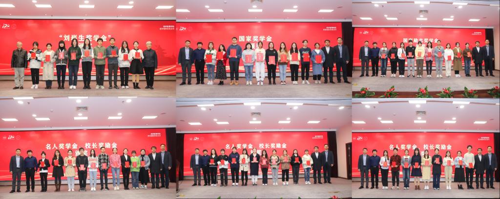 易福金教授、徐志刚教授、耿献辉教授、周力教授为国家奖学金、国家励志奖学金、名人奖学金、校长励志金获得者颁奖。
