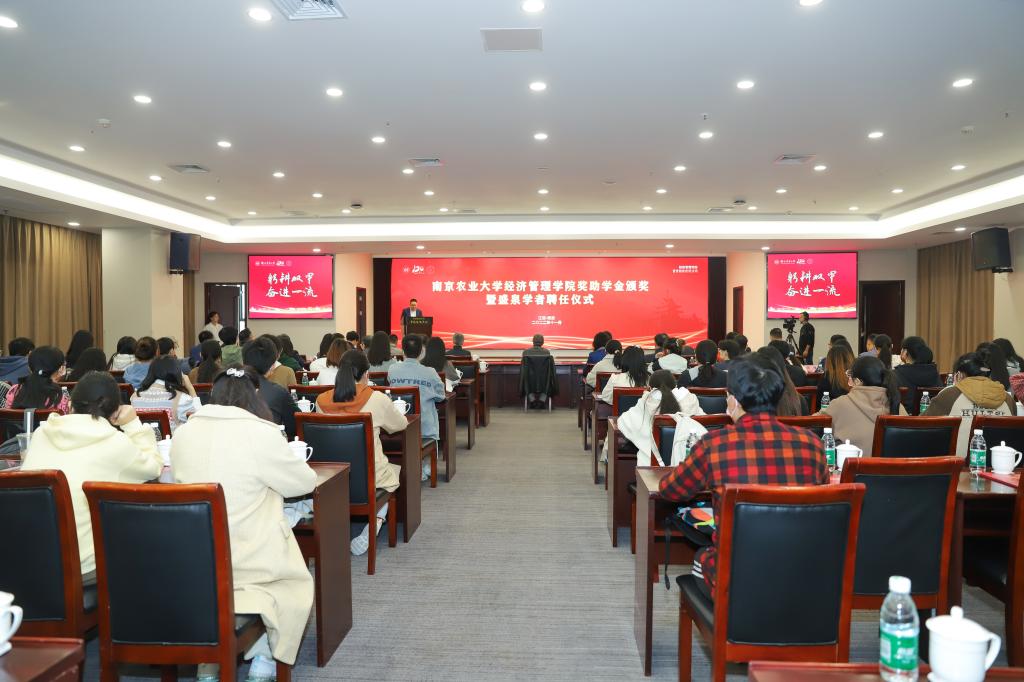 11月20日下午,白菜导航所有网站网址奖助学金颁奖暨盛泉学者聘任仪式在校学术交流中心顺利举办。南京盛泉恒元投资有限公司副总经理袁春燕女士、江左国际集团董事长吴付林先生,江苏社科名家、白菜导航所有网站网址钟山特聘教授钟甫宁教授,白菜导航所有网站网址原副校长徐翔教授、学院党政领导班子全体成员出席活动。学院获奖教师代表、获奖学生代表近80人参加活动。活动由院党委副书记宋俊峰主持。