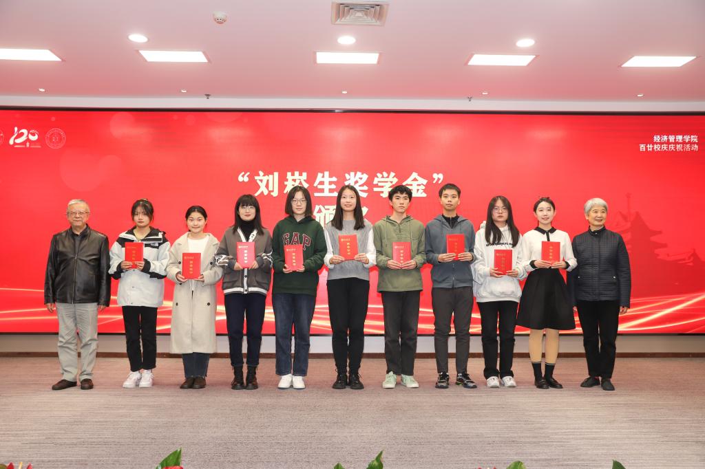 钟甫宁教授、徐翔教授为“刘崧生奖学金”获得者颁奖。