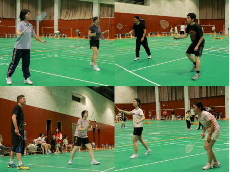 本次赛程设计独具匠心,包括女子双打、男子双打和混合双打三个项目。比赛吸引了学院众多羽毛球爱好者,参赛选手经随机抽签最终分为四组,并确保每组至少配备一名老师。