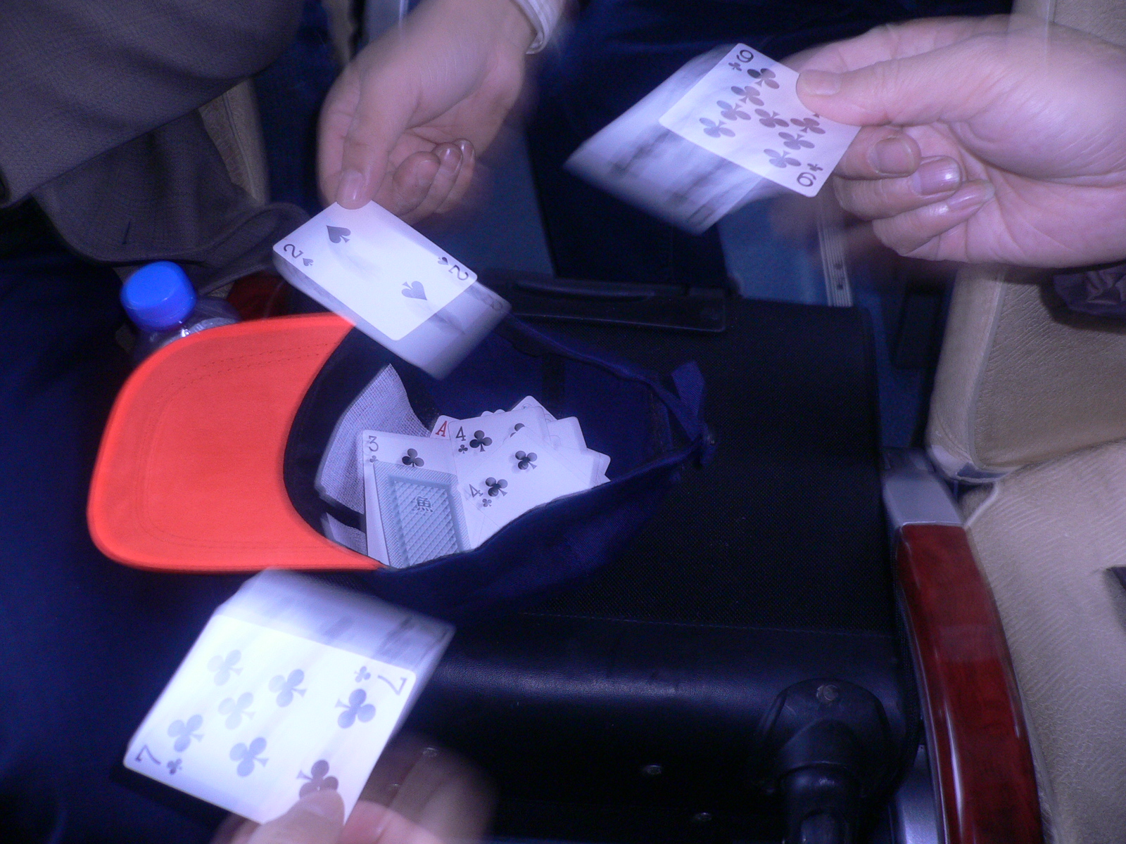 这次是南京神州旅行社的张总亲自带队,等大家在车上闭目养神一个钟头后,张总开始发挥她的老导游风范了,给我们讲了一个翻越长城就可以翻越床中间的皮箱子的笑话,赢得了车上一干人等的会心微笑。之后张总开始活跃车上的气氛,说全车的人共同一只鸡,每个人只能吃鸡的一个部位,且相互不许重复。从坐在车前的同事开始,第一个