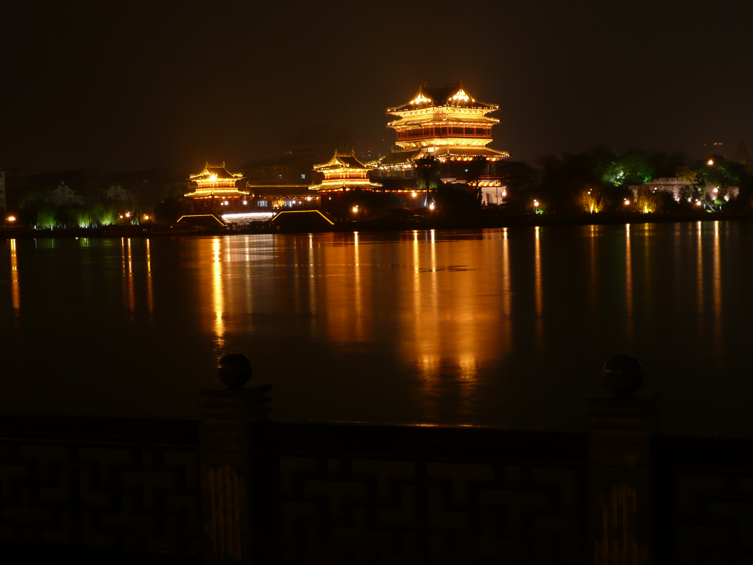 晚饭后,夜游泰州凤城河。凤城河是泰州的母亲河,近千亩连绵水域碧波荡漾,流动的音符,灿烂星河般点亮了泰州千年光辉历史。在桃园渡口,上画舫。香茗缭绕中泛舟河上,认真聆听着广播里对泰州的详细解读,平生第一次领略到了“州建南唐,文昌北宋,名城名宦交相重”的海陵厚重的历史以及这座淮海古郡的鼎盛人文。沿着凤城河的掌纹一路前行,宛若徜徉于中国戏曲文化长廊,不经意间走进了孔尚任《桃花扇》里侯方域