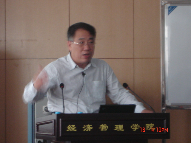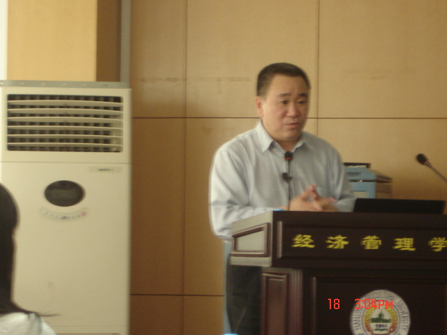 2009年4月18日,下午3:00,在逸夫楼5045报告厅,国务院发展研究中心农村部徐小青副部长和国家粮油信息中心尚强民主任来我院作报告,报告内容分别为当前农村形势与政策、当前国内外粮食市场形势。钟甫宁教授主持了本次报告。