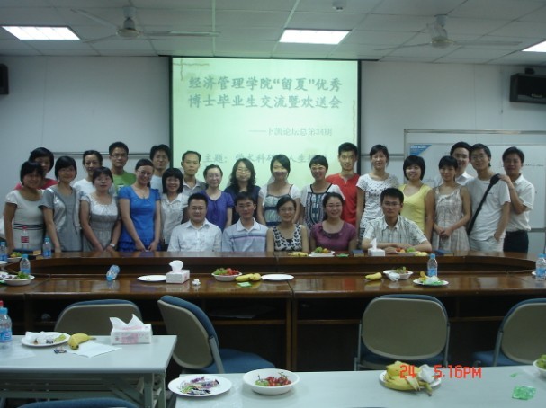 6月24日下午两点起,“留夏”优秀博士毕业生交流暨欢送会围绕学术科研和人生规划两个方面在逸夫楼5086教室如火如荼地进行了三个小时。出席的优秀博士毕业生代表有展进涛博士、刘军弟博士、周宁博士、赵文博和范子英博士,整个过程轻松愉快。通过这次交流会,他们在这个夏天给在校研究生们留下了更多的信心和更深的思考。