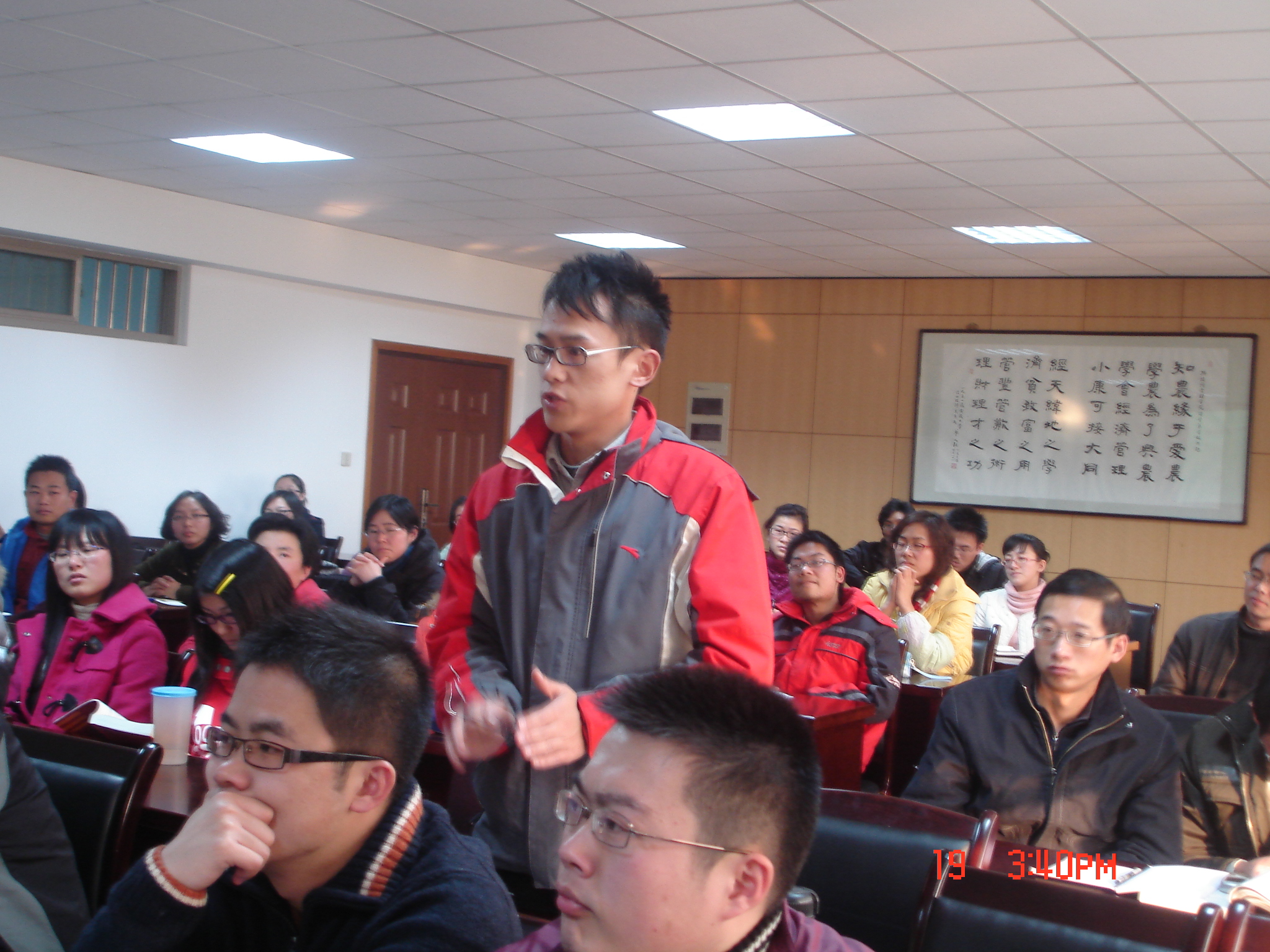 丁局长首先介绍了江苏省2009年1-10月的外经贸运行情况,他用18个字做了精辟的概括“降幅持续收窄、企稳迹象明显、发展亮点突出”;随后他利用数据和图表详细的介绍了当前贸易摩擦热点问题——反倾销、反补贴和“337调查”。他用生动的案例,并结合自己在处理贸易摩擦的成功经验和工作中的切身体会,向同学们讲述了政府和企业在面对“两反”、“两保”调查时应持有的态度和采取的措施。令同学们佩服的还有丁局长的严谨敬业的精神,相关数据的统计精确到了11月18日。期间,丁局长和现场同学进行了热烈的互动,他耐心地对同学们的提问做了详尽回答并建议同学们要理论联系实际,多思考实际问题。现场同学纷纷表示受益匪浅。