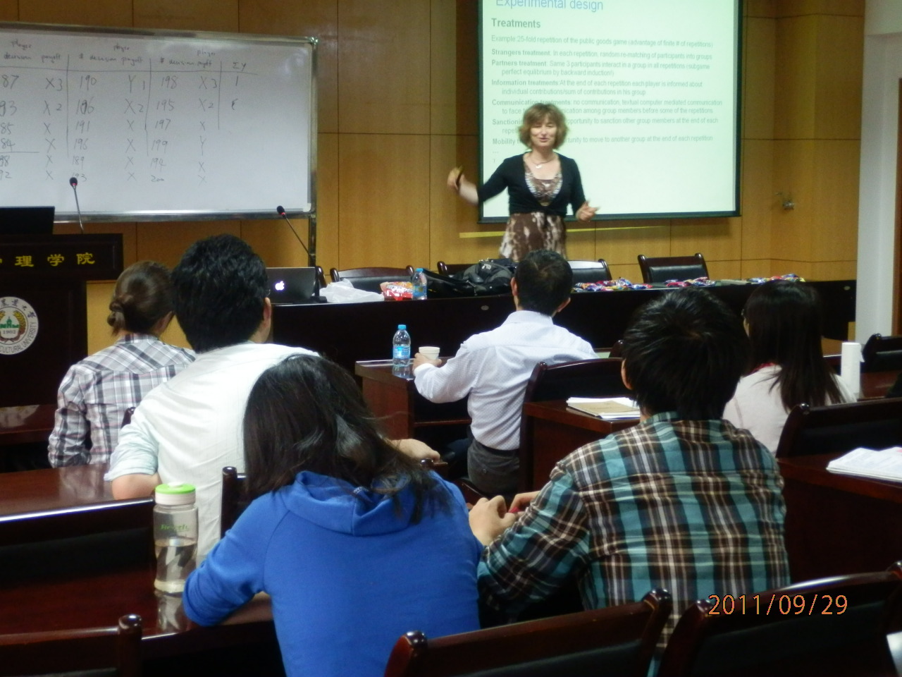 9月29日下午两点,在经管院学术报告厅5045,在继28日题为“Trust and Reputation Management”的学术讲座之后,德国哥廷根大学Claudia Keser教授再次给我院师生带来了一场题为“Cooperation in Public-Goods Experiments”的学术讲座。钟甫宁教授主持了这场讲座。