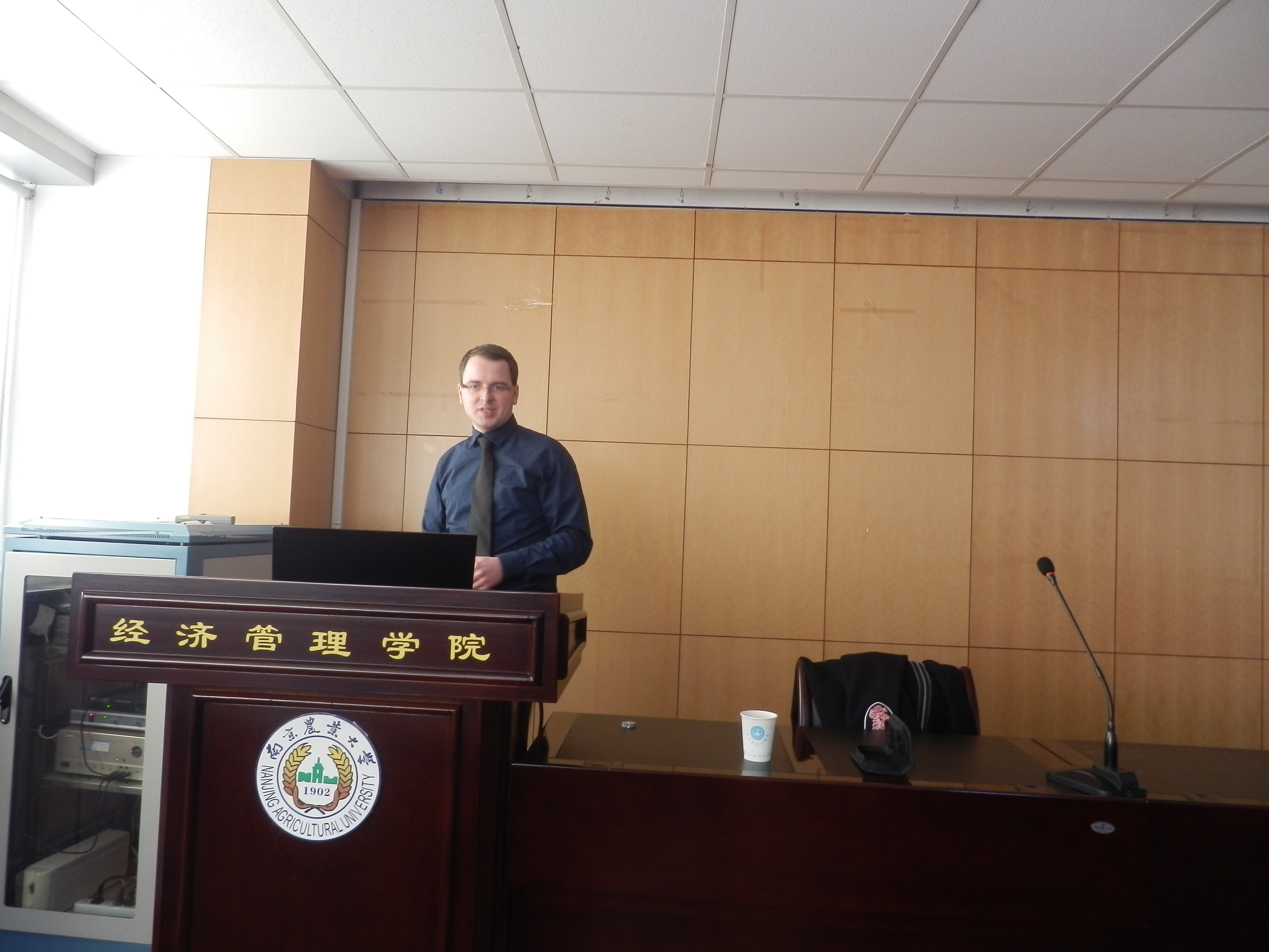 12月16日下午两点半,经管院学术报告厅座无虚席,德国哥廷根大学库郎贫困、平等与发展研究中心博士生Rainer Holst给我院广大师生带来了一场题为“Climate Change, Risk and Grain Yields in China(气候变化,风险与中国的粮食生产)”的学术报告,分享他最近的研究成果。