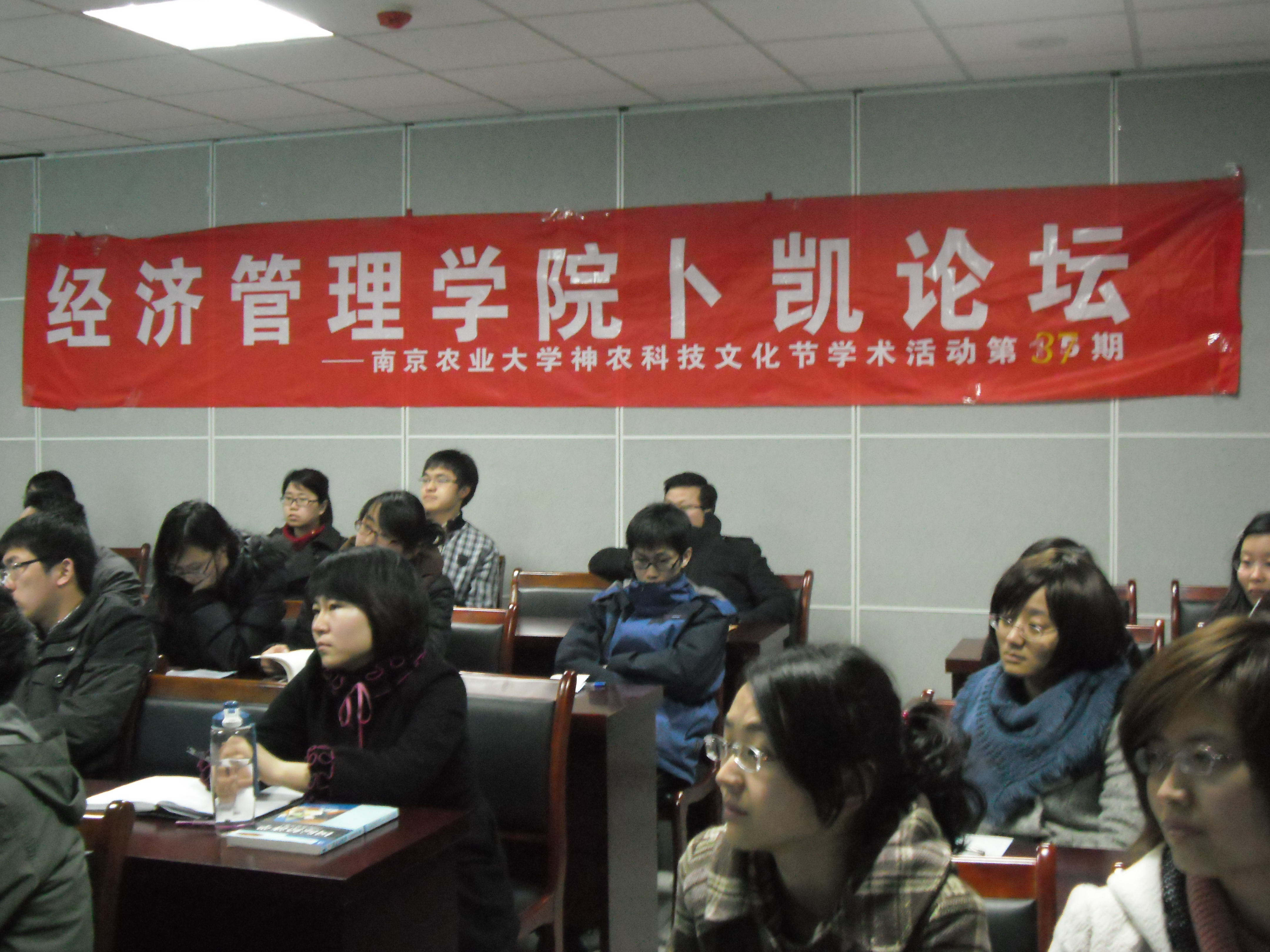 由经管院研究生会学术部承办的第五十一期卜凯论坛于2012年3月21日晚上7点在逸夫楼5078举行。在此次论坛上,张宁、蔡敏敏两位研究生做了研究报告,潘军昌、何军两位老师做了精彩的点评。