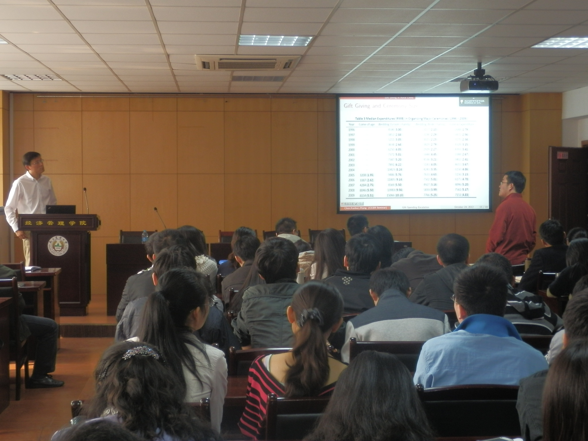 10月30日上午10点,经管院学术报告厅座无虚席,我校杰出校友、耶鲁大学助理教授陈希博士给我院带来了一场精彩的学术报告:“达尔文现象与相对剥夺:案例、测量与福利评估”。经管院广大师生参与了此次报告,报告会由经管院林光华副教授主持。