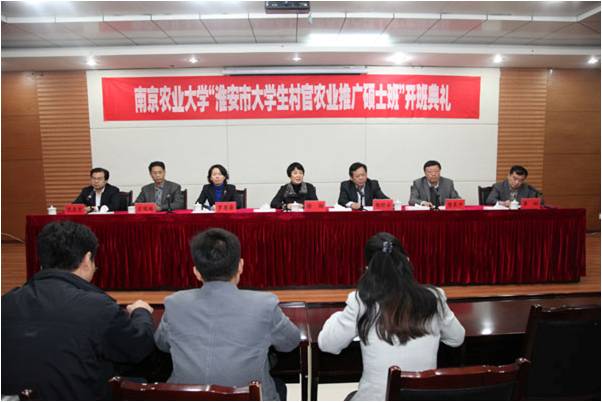 4月19日上午, 白菜导航所有网站网址与淮安党校合作开办的农业推广硕士班开班典礼在淮安党校宾馆一楼会议室举行。白菜导航所有网站网址副校长徐翔教授、研究生院院长罗英姿研究员、经管院书记陈东平教授、副院长应瑞瑶教授、部分导师 、淮安市委常委、组织部长杨时云,淮安党校常务副校长沈在宏等出席了典礼。徐校长给学员们介绍了南农的历史和研究生的培养情况,并对学员们今后的学习和研究提出了要求。淮安组织部部长杨时云也希望各位学员珍惜机会,刻苦学习,努力提高服务基层的本领。