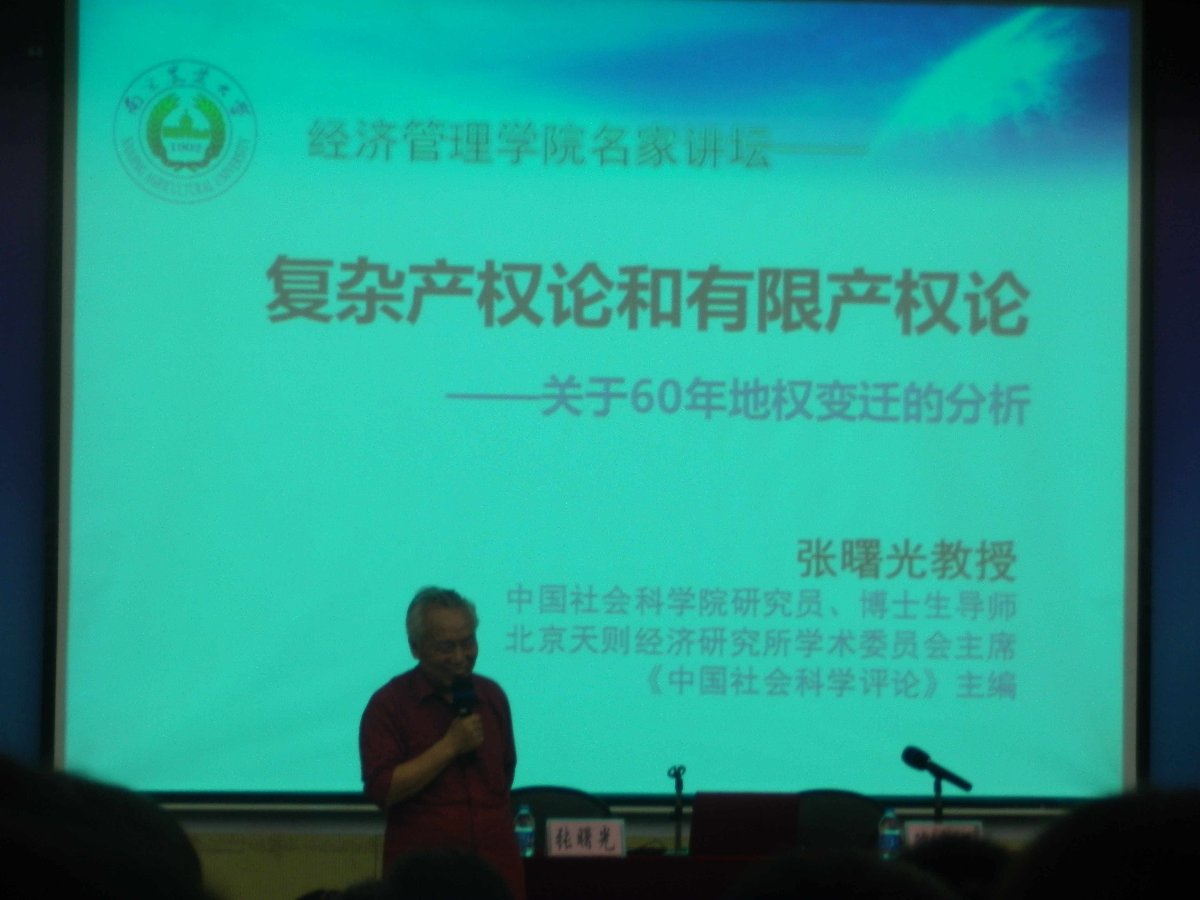2013年5月28日下午,张曙光教授在图书馆学术报告厅给我校师生做了一场题为“复杂产权论和有效产权论——关于60年地权变迁的分析”的报告,张教授系中国社会科学院研究员、博士生导师、北京天则经济研究所学术委员会主席和《中国社会科学评论》主编。经管院党委书记陈东平教授主持了此次报告会。