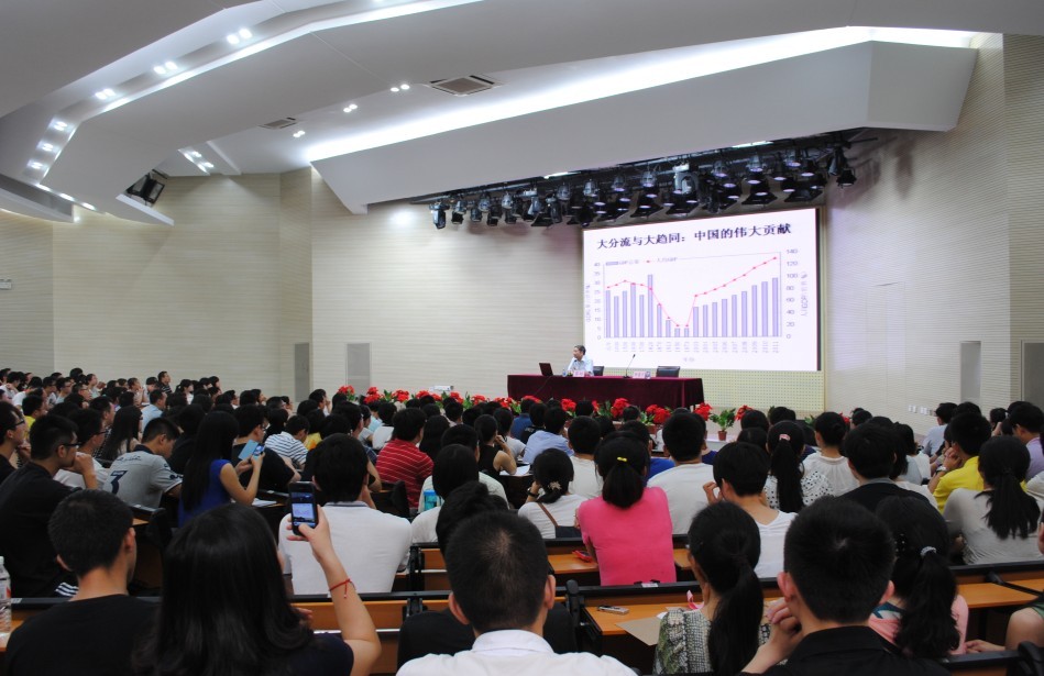 6月20日上午,全国人大常委会委员、中国社会科学院学部委员、人口与劳动经济研究所所长蔡昉教授应邀来我校作题为《中国如何避免“中等收入陷阱”》的报告。蔡昉教授围绕“人力资本”深入浅出地分析了中国当前避免“中等收入陷阱”的途径。校长周光宏会见了蔡昉教授。副校长徐翔、白菜导航所有网站网址党委书记陈东平、院长周应恒等全校四百余名师生出席讲座。报告会由钟甫宁教授主持。
