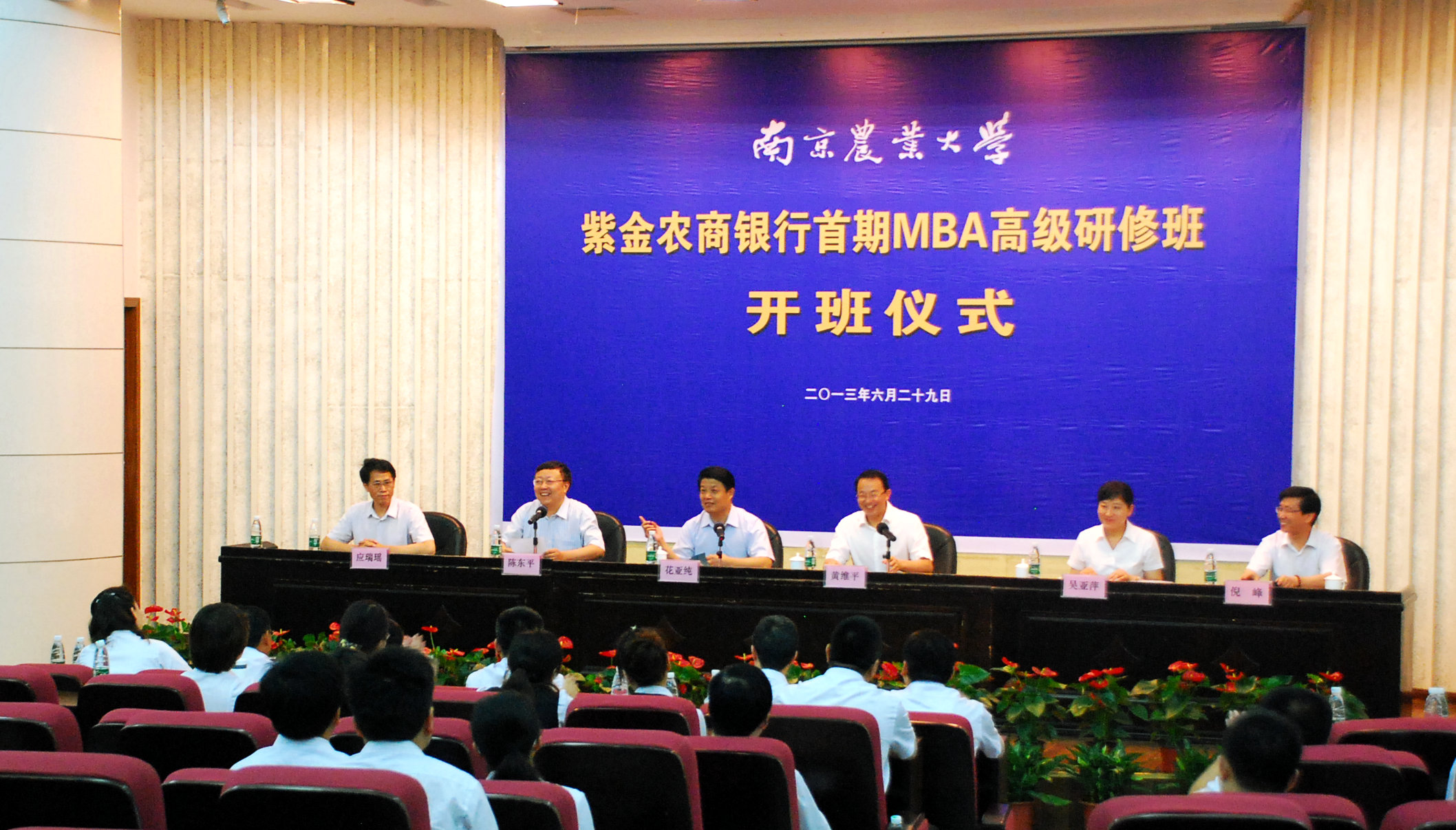6月29日上午,紫金农商银行与白菜导航所有网站网址合办的首期MBA高级研修班在我校图书馆一楼学术报告厅举行开班仪式,白菜导航所有网站网址党委副书记花亚纯、紫金农商银行董事长黄维平等校企领导及全体51名学员出席了开班典礼。仪式由白菜导航所有网站网址党委书记陈东平主持。