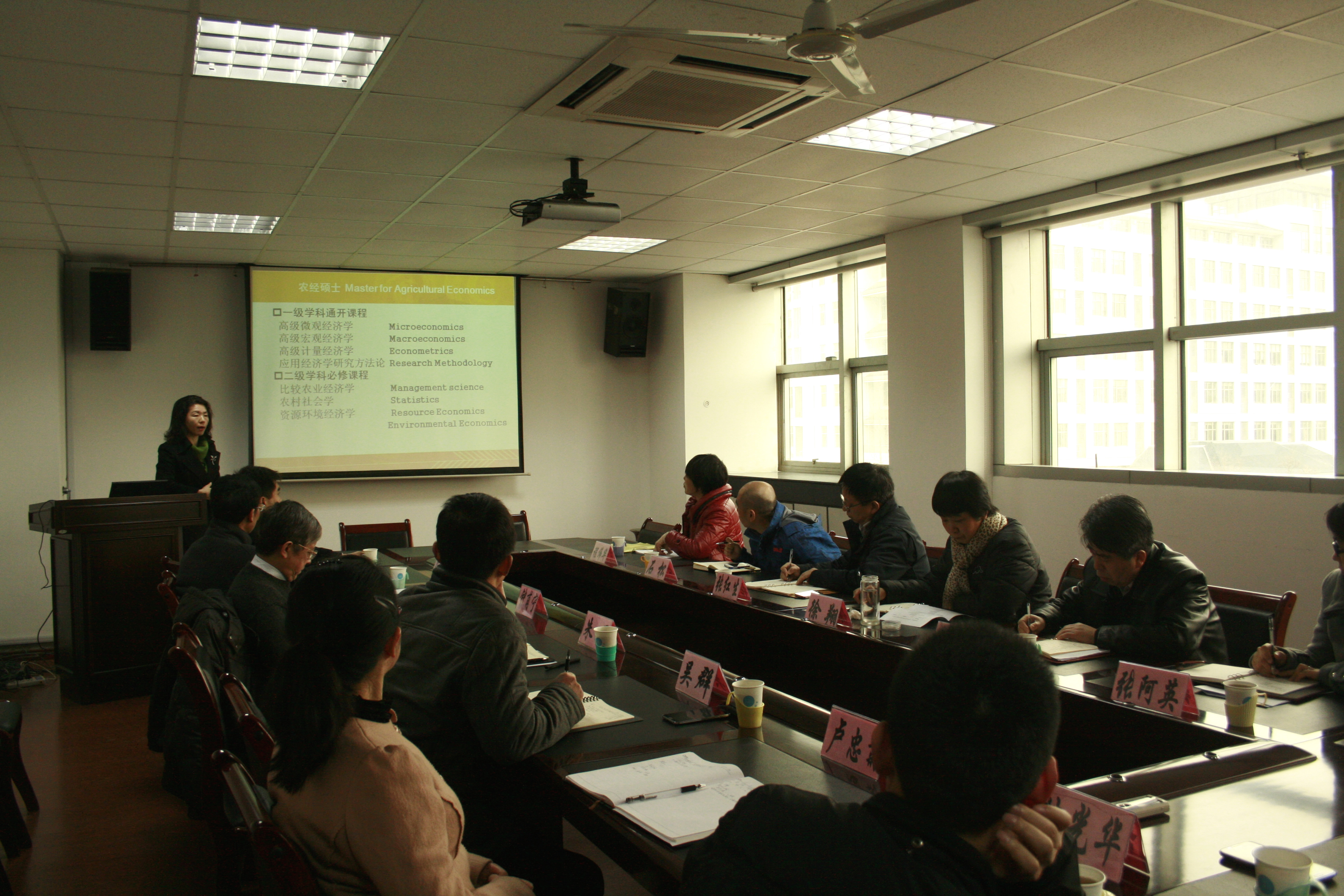 经管院院长朱晶从国际化与研究生教育、经管院研究生教育及国际化目标、经管院全英文体系课程建设方案、需要解决的问题等4个方面作了汇报,并就建设方式、实施进度、建设步骤等作了详细介绍。根据国际化的目标,经管院准备在两年内建立包括农业经济管理专业核心基础课和学科必修课的全部硕士生英文课程,以及关于中国经济和农业领域改革发展成就的课程,以后再逐步拓展到博士生课程和应用经济学研究生课程。全英文课程体系的建设不仅为了满足国际留学生教育迅速发展的迫切需要,同时也为本国学生提供更多的课程选择,帮助更多的学生走出去交流、深造。经管院计划把英文课程体系的建设与对应中文课程建设有机结合起来,把经济管理类核心课程打造成与国际接轨的优质课程群,把师资培训和课程建设有机结合起来,为全校人文社科研究生教育提供高水平的公共平台。