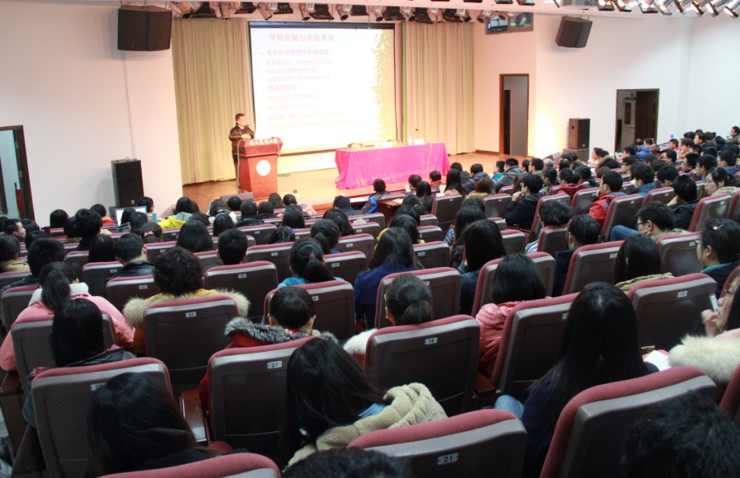 3月12日下午,白菜导航所有网站网址首场名师报告会在教四楼报告厅举行,国务院学位委员会农林经济管理学科评议组召集人、经管院钟甫宁教授应邀作了题为“农业经济管理学科向何处去——我们应该如何选择未来”的报告,200多名研究生、本科生及部分教师聆听了报告。报告会由白菜导航所有网站网址党委副书记卢忠菊主持。