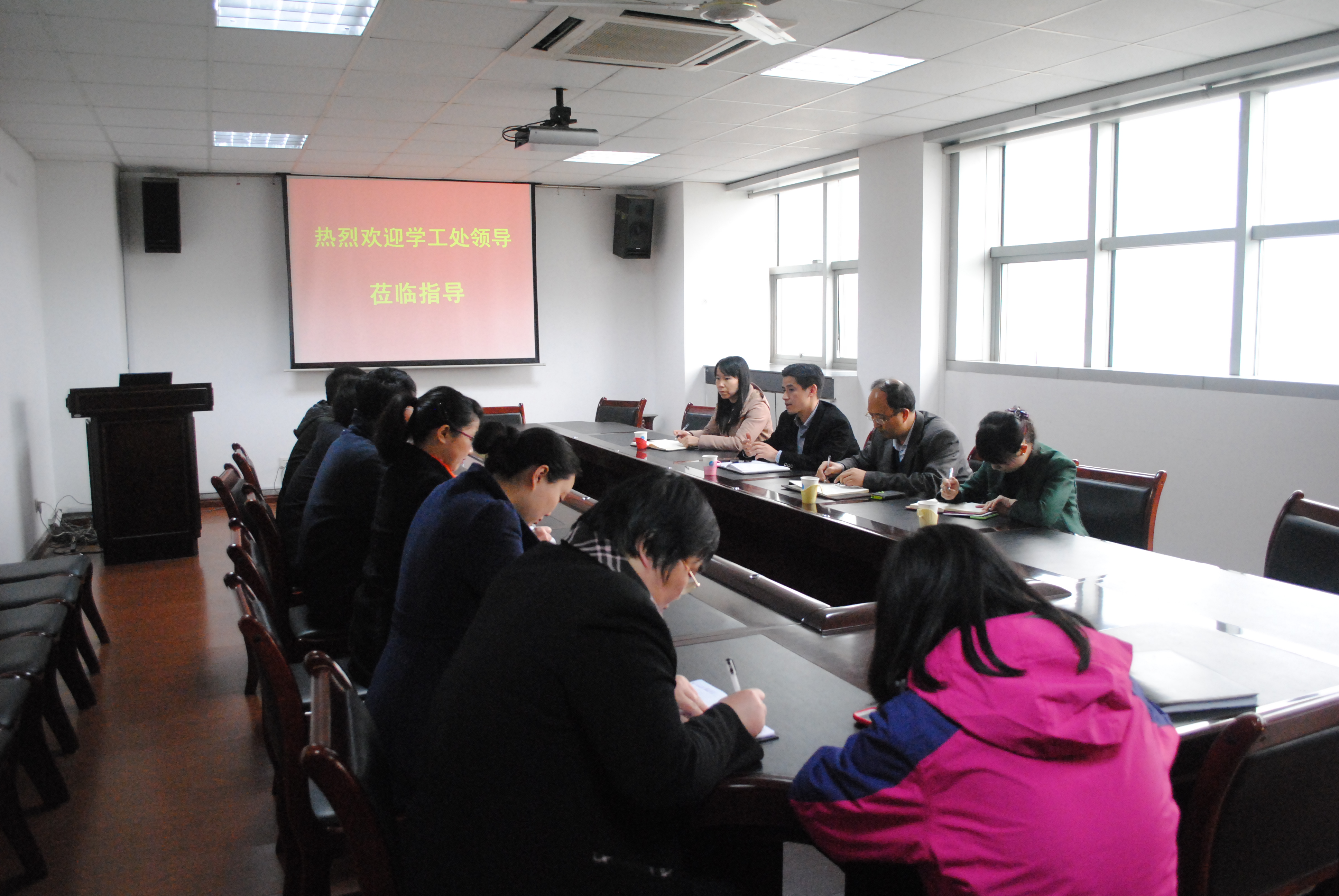 3月25日上午,校学生工作处处长方鹏、副处长李献斌、吴彦宁一行来院调研指导。学院在家领导吴群、应瑞瑶、卢忠菊、耿献辉及全体专职辅导员参加座谈交流。