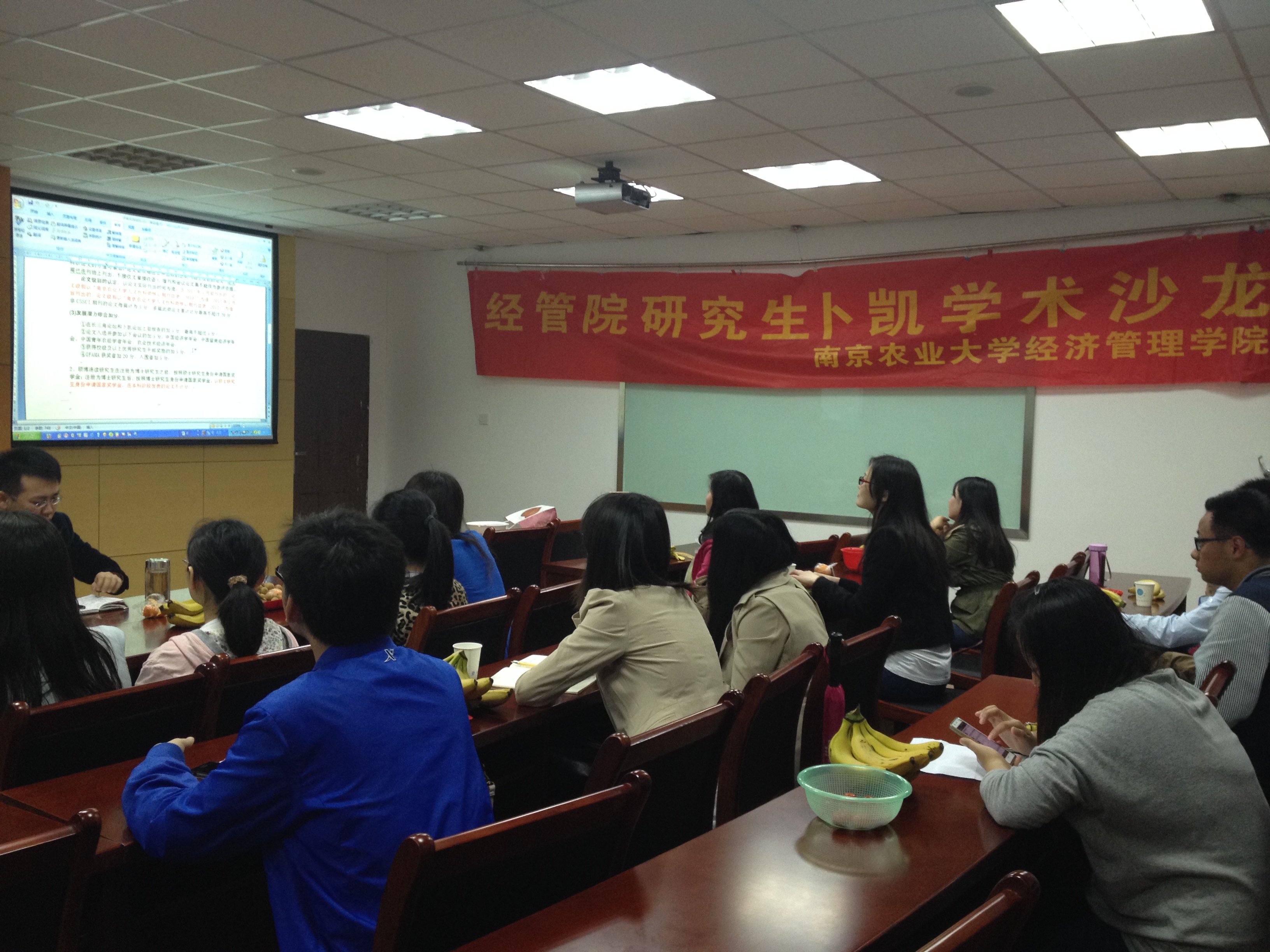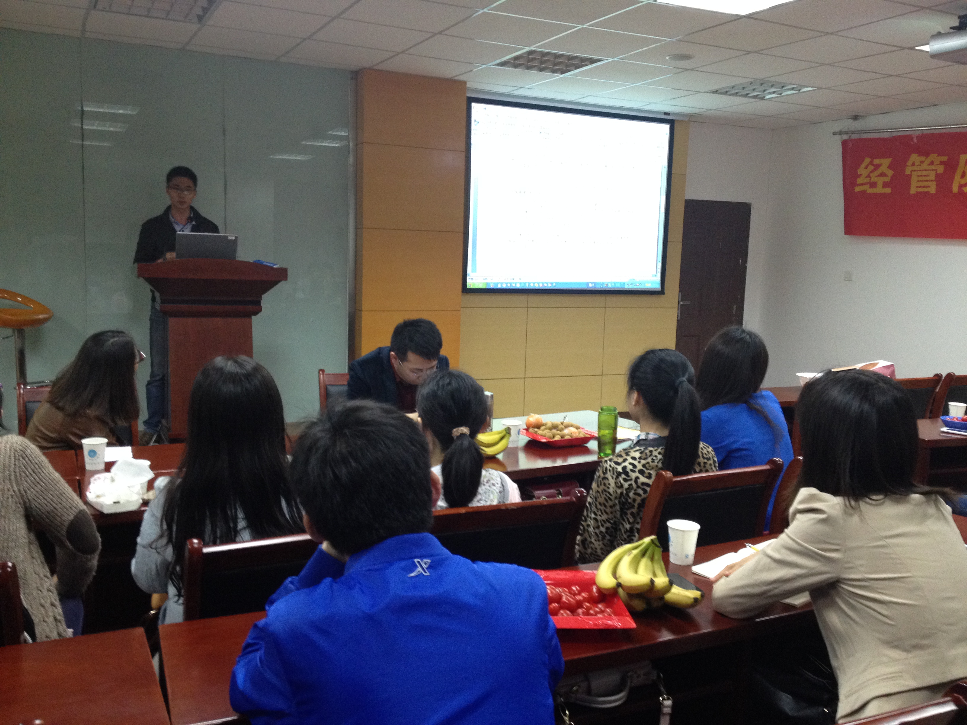 首先,张晓恒学长就经管院研究生国奖的评选细则做了详细的介绍。他认为,能够获得国奖的关键在于取得一定的学术成果,即在核心期刊上发表文章。同时他鼓励研究生尽早着手写文章发文章,不仅有利于毕业还有可能拿奖学金。接着,刘亚洲学长分别从目标、原则和方法三个方面谈了自己的见解,并提出了几点建议。他结合自己的经历引导听众怎么去选择目标、选定目标以及实现目标;在原则方面,他认为做人做事都要有原则,学术研究也是;同时他强调学术研究的基础要打好,对于初学者可以从模仿做起,不可急于求成。最后,姚玮学姐从论文写作与投稿方面谈了谈自己的体会,并介绍她一篇文章改了数次的艰难,从而告诉我们不能轻言放弃。