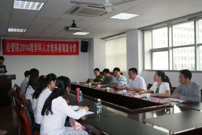 9月14日上午,经管学院举行2014年跨学科人才培养暑期夏令营闭营仪式。校研究生院副院长陈杰、经管学院领导班子、农业经济学系正副系主任以及全体夏令营营员参加闭营仪式。仪式由经管学院党委副书记卢忠菊主持。
