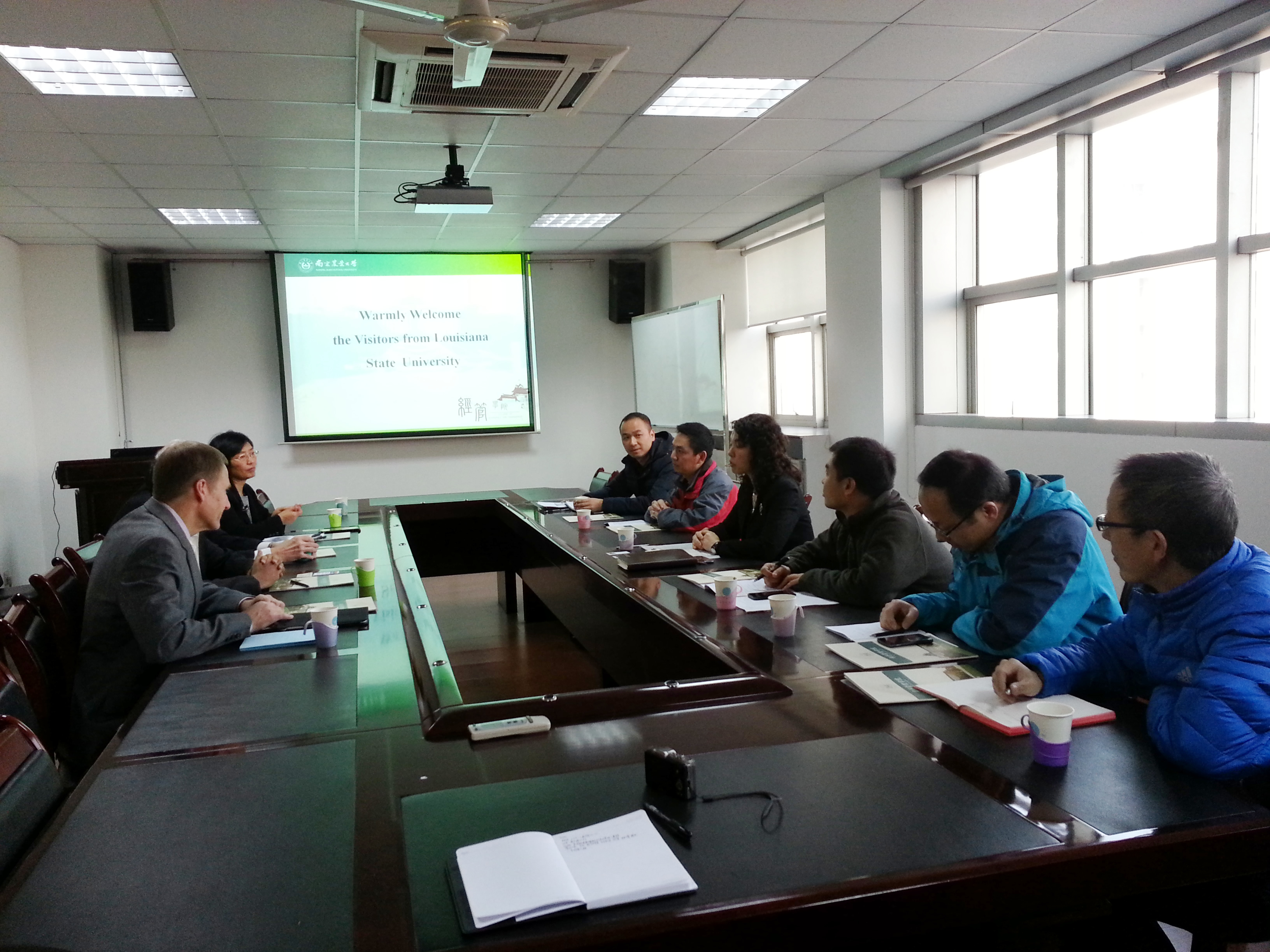 12月8日上午,路易斯安那州立大学大学代表团一行四人来我院进行访问交流并洽谈国际合作事宜。该代表团以路易斯安那州立大学农经系系主任Cramer教授为团长,还包括农经系Paudel教授、农业中心国际事务主任Picha等。我院院长朱晶教授在学院会议室主持了与该代表团的交流座谈会。出席该交流座谈会的还有何军教授、林光华教授、王玉峰副教授、耿献辉副教授、周力副教授等。
