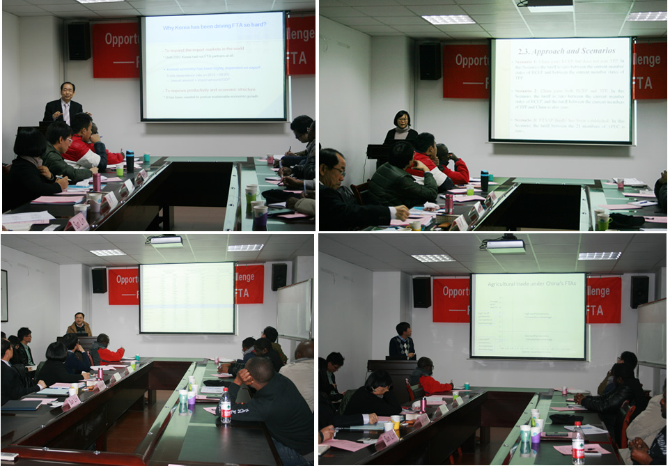 论坛正式开始后,来自韩国江原大学、东南大学、浙江工业大学、白菜导航所有网站网址的四位专家报告,分别以《中韩自贸区的农业谈判》、《中国的抉择:跨太平洋伙伴关系协议(TPP)、亚太自贸区(FTAAP)》、《中国-东盟区域合作与粮食安全》、《中韩、中澳自贸区及其对中国农业的潜在影响》等主题,就中韩、中澳自贸区的谈判与建立对我国经济特别是农业的影响以及我国如何发展多边贸易进行了论述并展开热烈讨论。