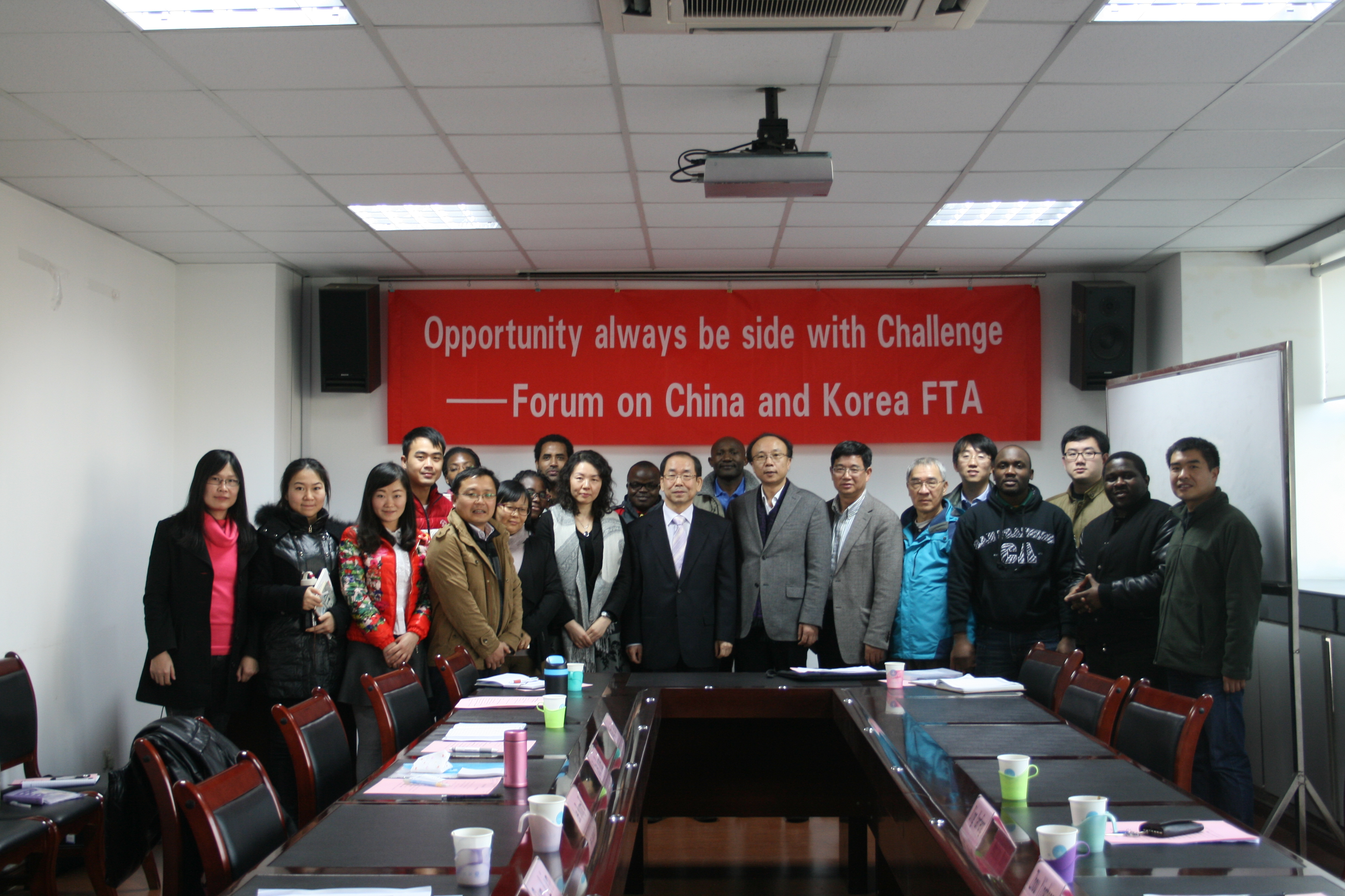 12月9号下午,我院在5046会议室举办中韩自贸区论坛。本次论坛是在中韩自贸区和中澳自贸区谈判刚刚实质性结束的大背景下,我院主动适应国家重大战略需求而举办的国际论坛。论坛邀请到了韩国江原大学李炳午教授、东南大学陈淑梅教授、浙江工业大学孙林教授以及我校经管学院王学君副教授等四位国际贸易领域的知名学者作为发言嘉宾。我校副校长丁艳锋教授、人文社科处处长周应恒教授致辞,白菜导航所有网站网址院长朱晶教授主持了论坛。包括留学生在内的30多名师生参加了本次论坛。
