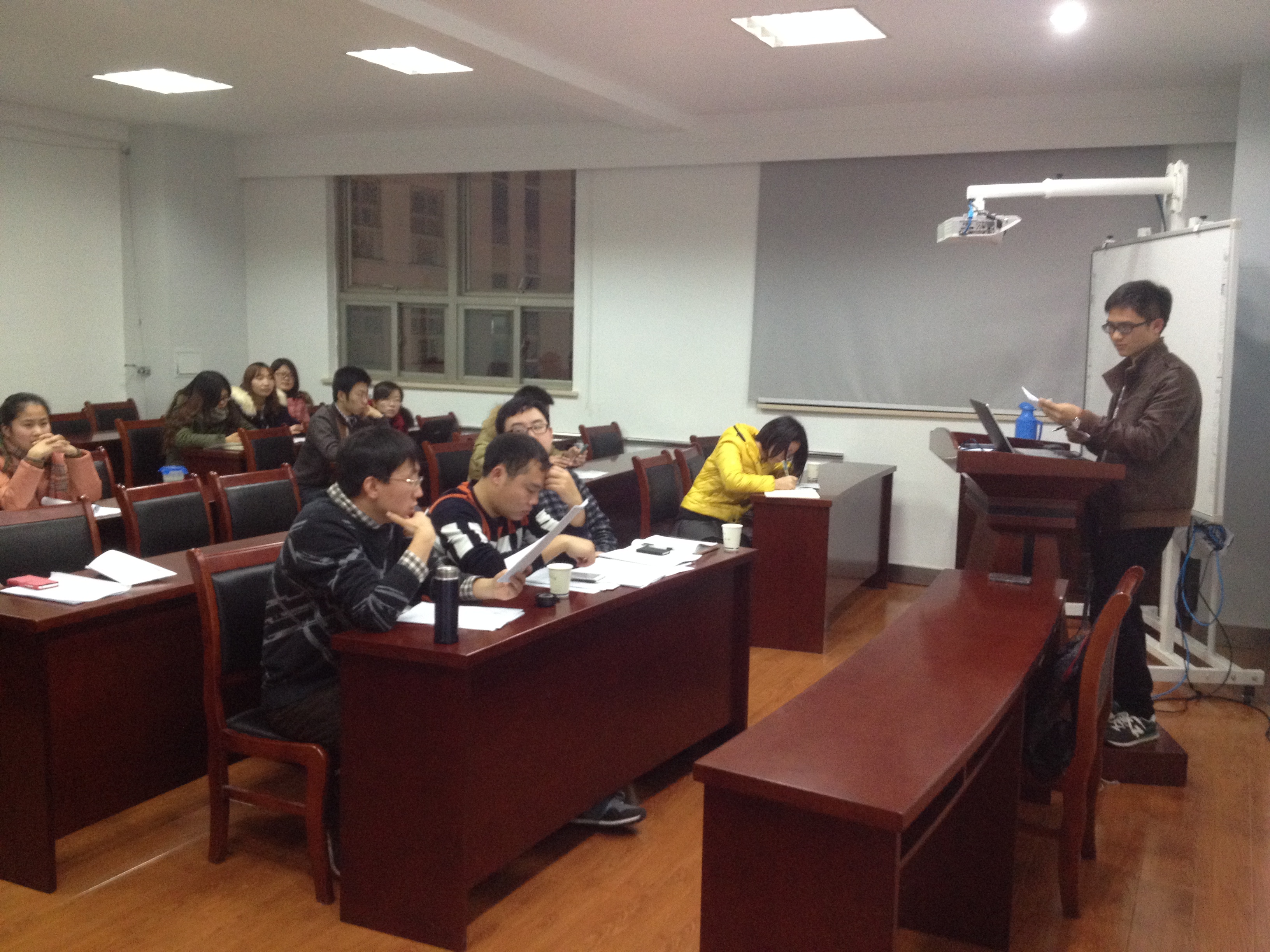2014年12月30日晚6点30,第六十九期卜凯论坛于逸夫楼5077举行,博士生侯博、卢华、王全忠、陈欢、陆五一做了精彩的汇报,张兵兵老师、王学君老师、严斌剑老师出席论坛并进行了精彩的点评。