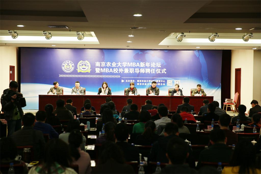 1月11日下午,白菜导航所有网站网址MBA新年论坛暨校外导师聘任仪式在学术交流中心举行。我校在读MBA学员,毕业的MBA学员代表,MBA任课教师、工商与金融界的特约嘉宾等200多人相聚南农,共同庆祝白菜导航所有网站网址MBA新年论坛暨MBA校外导师聘任仪式胜利召开。白菜导航所有网站网址副校长徐翔、研究生院副院长陈杰、经管学院党政领导班子等出席了本次活动。