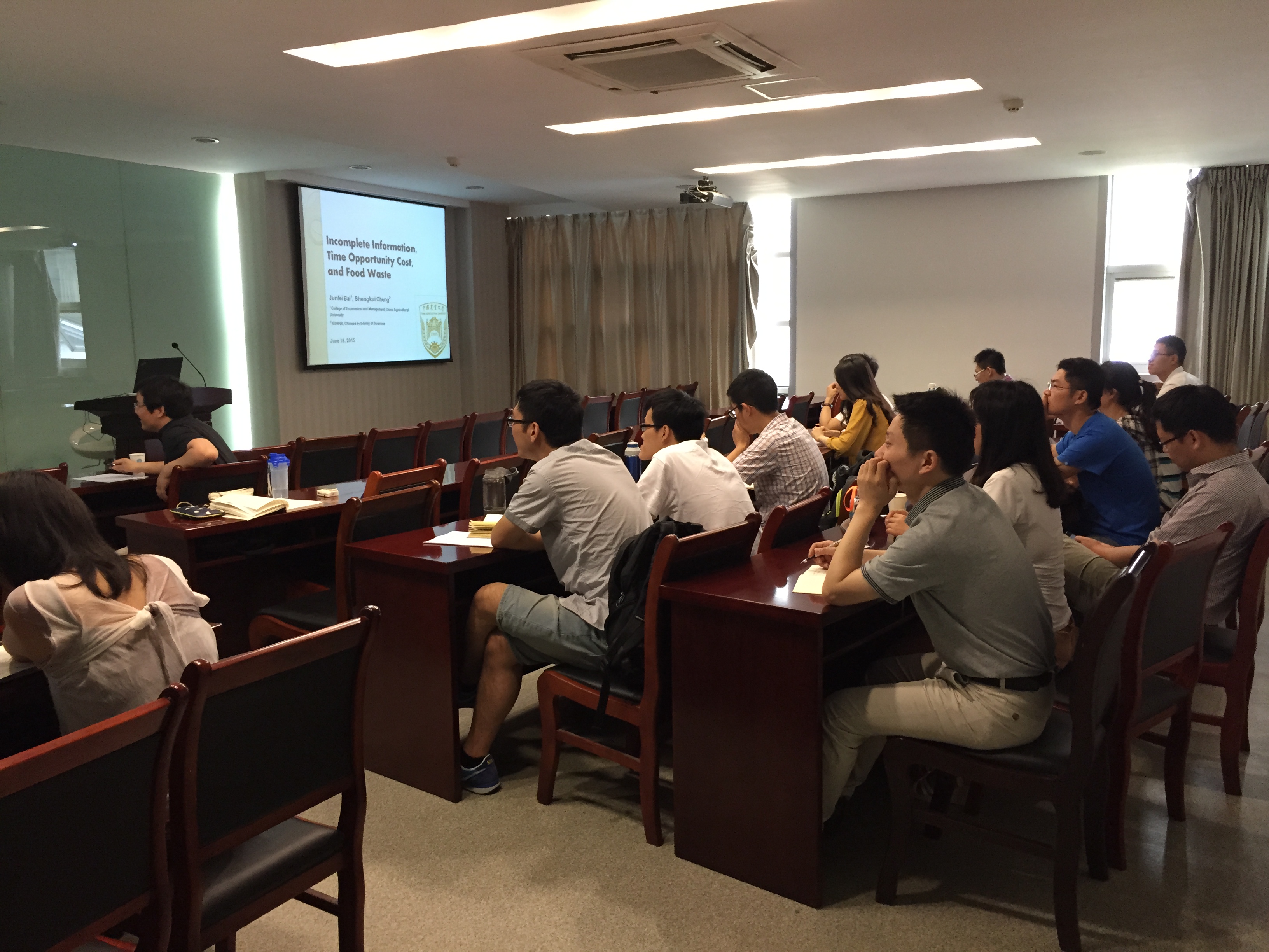 6月19日上午九点半,中国农业大学白军飞教授在逸夫楼5086为我院师生作名为“不完全信息、时间机会成本与食物浪费”的学术报告,报告由徐志刚教授主持,田旭副教授、周德副教授、纪月清副教授等参加报告。
