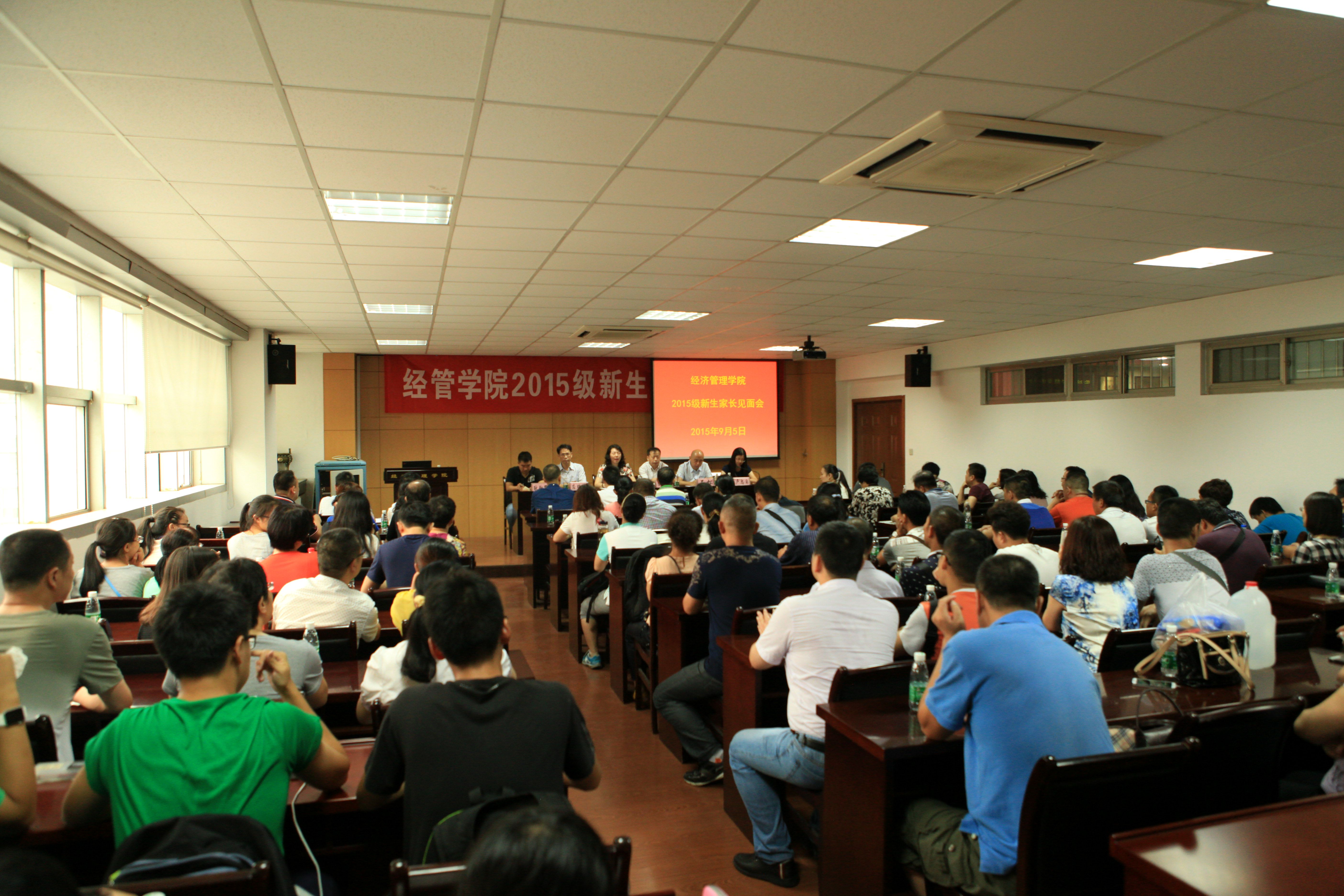 9月5日下午,白菜导航所有网站网址2015级新生家长见面会在经管学院报告厅举行。白菜导航所有网站网址院长朱晶,院党委书记胡浩,副院长应瑞瑶、耿献辉,国际教育学院副院长石松以及学院各系系主任、辅导员、新生班主任出席。会议由学院党委副书记卢忠菊主持。