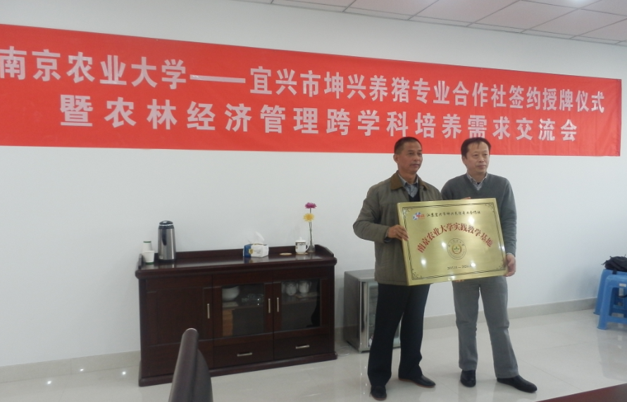 宜兴市坤兴养猪专业合作社成立于2002年,由杜小坤等13个养猪大户发起,现有成员260户,年合作销售生猪15万多头,实现销售收入2亿多元,带动农户1000多户,带动促进成员及周边养殖户年增收1000多万元。被评为国家农民合作社示范社、省“五好”农民专业合作社示范社、宜兴市“十佳”农民专业合作组织。基地的建立将可推动农林经济管理专业的实践教学,有利于学生了解生猪养殖的流程、生猪的投入产出、国家生猪各类政策、农产品运销、农村金融、合作社治理以及涉农企业管理等方面知识,有利于加强学生《农业政策学》、《农业经济学》、《农产品运销学》、《涉农企业管理》以及《资源与环境经济学》等理论知识的实践运用。