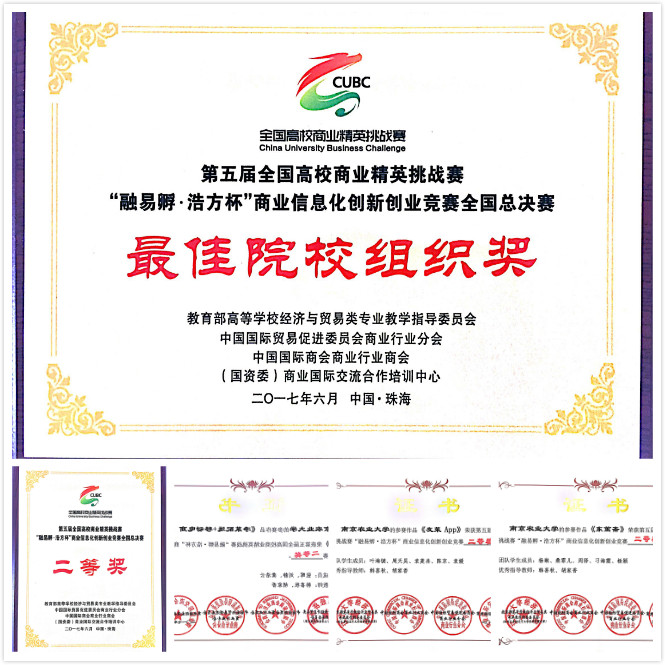 2017年6月5日-7日,第五届全国高校商业精英挑战赛“融易孵·浩方杯”商业信息化创新创业竞赛总决赛在广东省珠海市横琴创意谷成功举办。本次竞赛是由教育部高等学校经济与贸易类专业教学指导委员会、中国国际贸易促进委员会商业行业分会、中国国际商会商业行业商会、(国资委)商业国际交流合作培训中心、横琴发展有限责任公司联合主办,中国国际贸易促进委员会商业行业分会承办,横琴新区管委会支持的国家级学科竞赛活动,浩方集团和融易孵创业服务平台为此次竞赛的战略合作单位。我院教师韩喜秋和胡家香带领由农林经济管理、国际经济与贸易、市场营销、工商管理和电子商务专业的本科学生共计13人参加了此次总决赛,我院的三份参赛方案“东篱斋营销策划书”、“净菜配送+移动电商商业计划书”和“友菜APP”在比赛中均获得了二等奖,同时我校还获得了最佳院校组织奖。此外,我院学生在展示交流环节中表现优异,有四名学生被组委会遴选为颁奖礼仪,受到了组委会的一致好评。