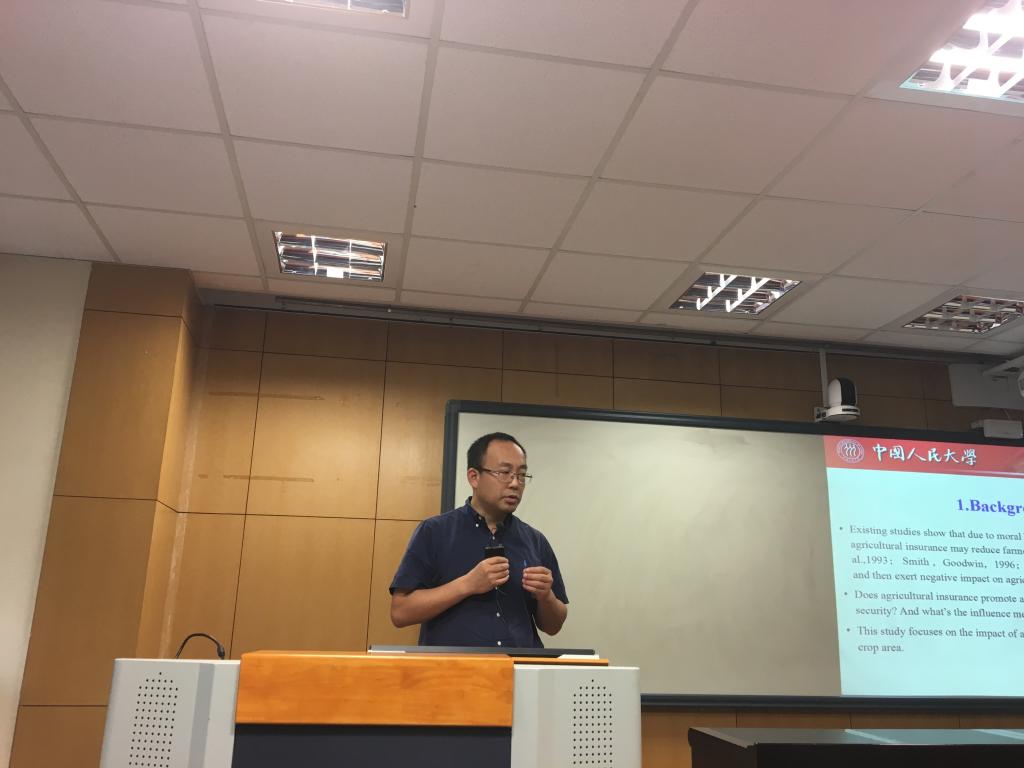6月23日下午,中国人民大学教授、国家优秀青年基金获得者仇焕广来我校作题为《农业保险对农户生产行为的影响研究》的报告。本次报告会由副院长林光华主持。