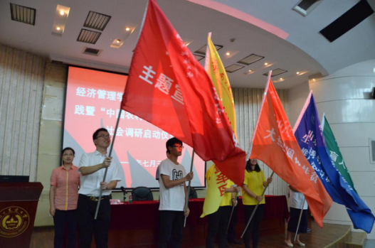 启动仪式上,出席活动的领导嘉宾为我院获得校重点一类二类的5支团队授了旗。