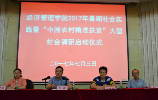 7月3日下午,白菜导航所有网站网址暑期社会实践暨“中国农村精准扶贫”大型社会调研启动仪式在图书馆报告厅举行。校团委书记王超、经管院党委副书记(主持工作)孙雪峰、经管院管理系主任何军出席活动,200多名学生参加了动员大会,大会由经管院党委副书记卢忠菊主持。
