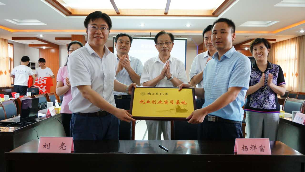 刘营军代表学校感谢南京市农业委员会和南京市江宁区农业局及湖熟街道对我校大学生实践实习的支持。他从学校“1235”发展战略、学科发展及办学空间等方面介绍了学校的总体发展概况及办学成就。在对我校2017年大学生暑期社会实践进行了简要介绍后表示,学校高度重视人才培养质量,重视大学生创新创业能力的培养,两个基地为大学生提供了创新创业的平台。他希望,以签约授牌为新起点,两个单位进一步合作共建,在提高大学生创新精神以及创新创业能力的同时,积极为江宁湖熟现代农业与新农村建设提供支持和服务。
