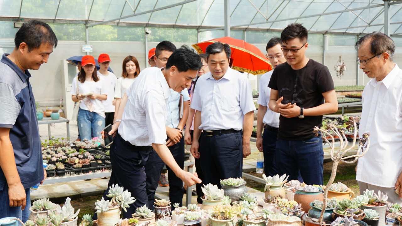 南京市农业委员会党委书记、主任方中友,南京市农委党委委员、副主任赵云翔,科技教育与产学研合作处处长陆信娟及江宁区农业局、江宁湖熟街道负责同志等与调研团一行进行了座谈交流,并陪同调研了多肉植物特色园区、园区国家级文物保护单位杨柳村古建筑群、水稻示范片以及现代农业科技展览馆。