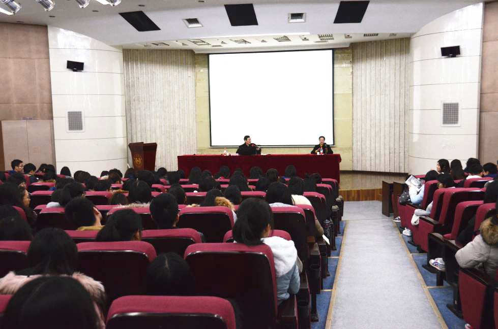12月21日晚,经管院学习宣传贯彻党的十九大精神专题报告会在图书馆报告厅举行,校党委副书记、纪委书记盛邦跃应邀作题为《不忘初心,牢记使命,高举中国特色社会主义伟大旗帜——十九大精神解读》的专题辅导报告。经管学院辅导员施培菊、李扬与200余名学生聆听报告。报告会由经管院党委副书记卢忠菊主持。